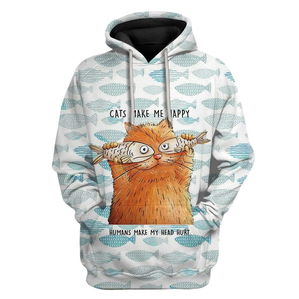 Gearhumans Custom T-shirt – Hoodies Cats Make Me Happy Humans Make My Head Hurt