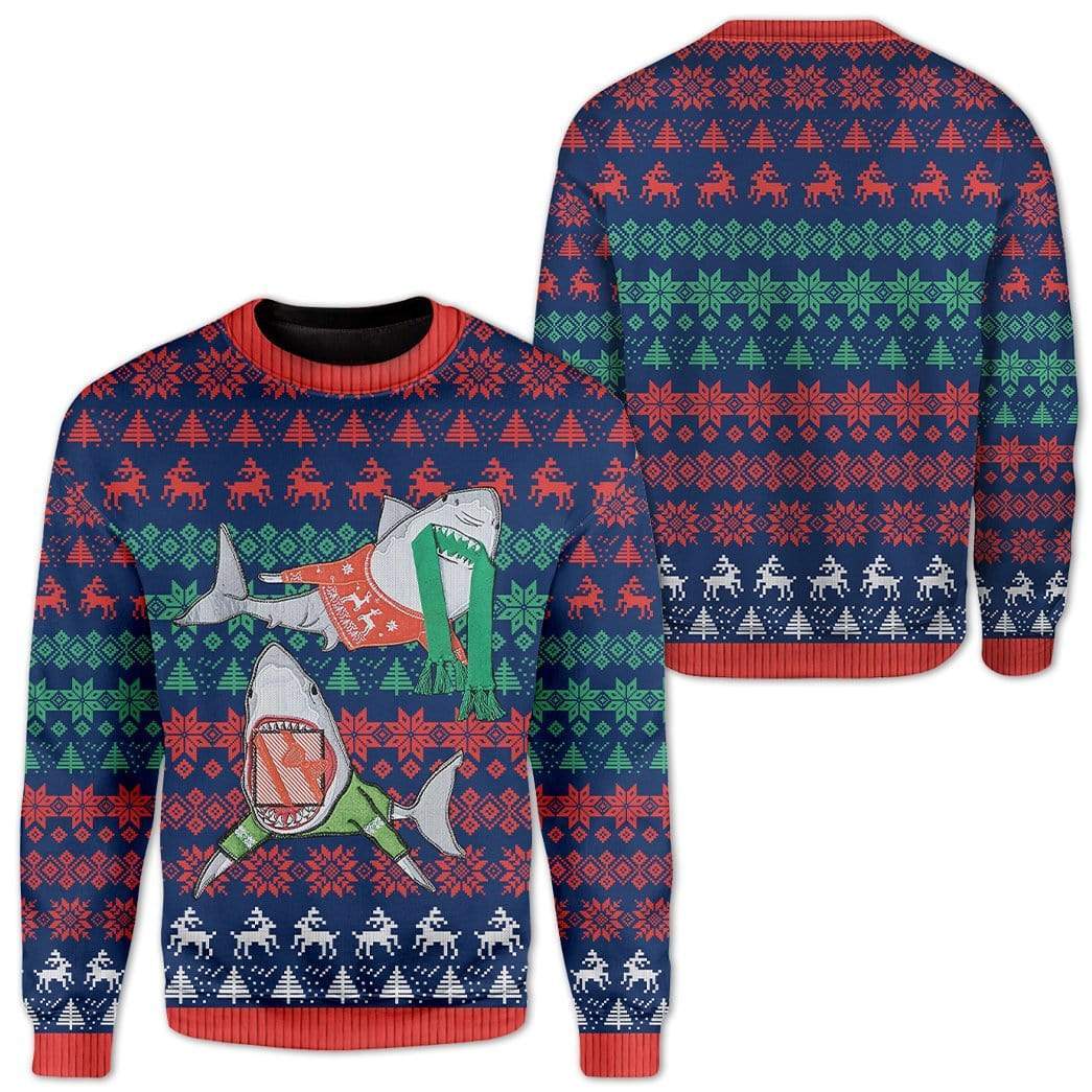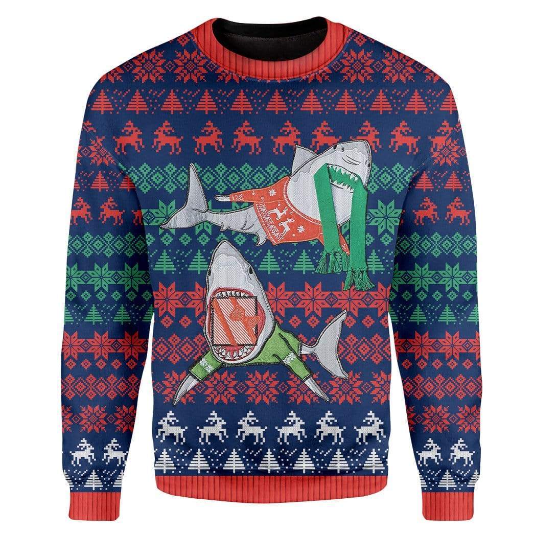 Gearhumans Custom Ugly Shark Christmas Sweater Jumper