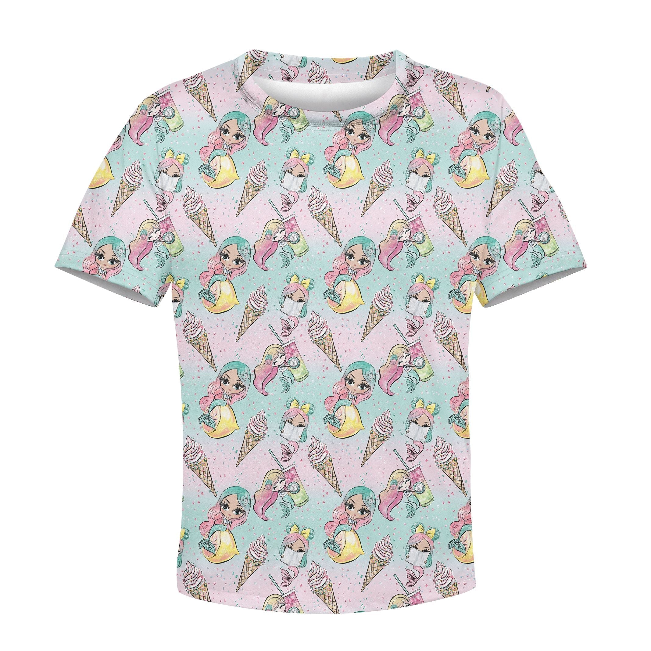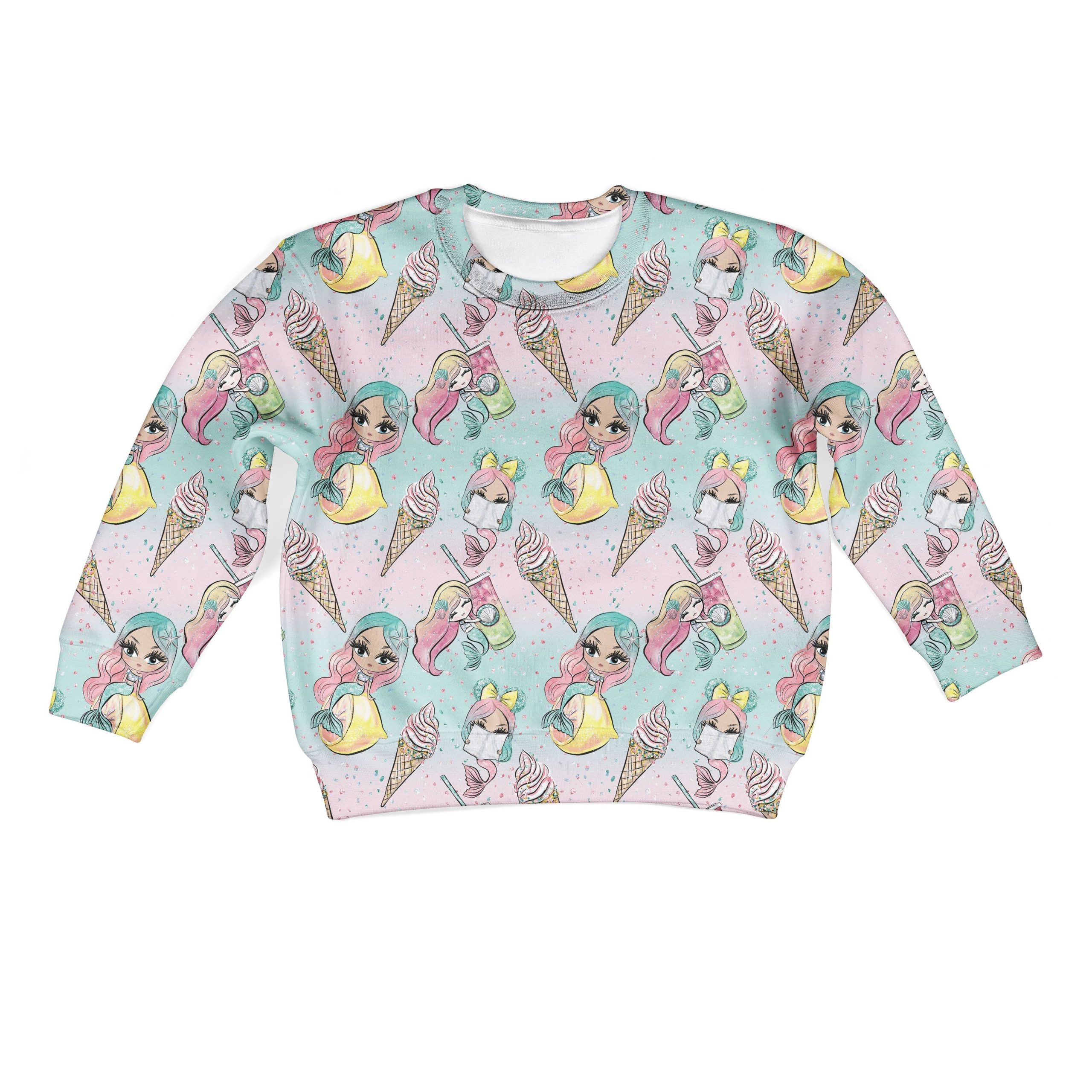 Gearhumans mermaid with ice scream Kid Custom Hoodies T-shirt Apparel