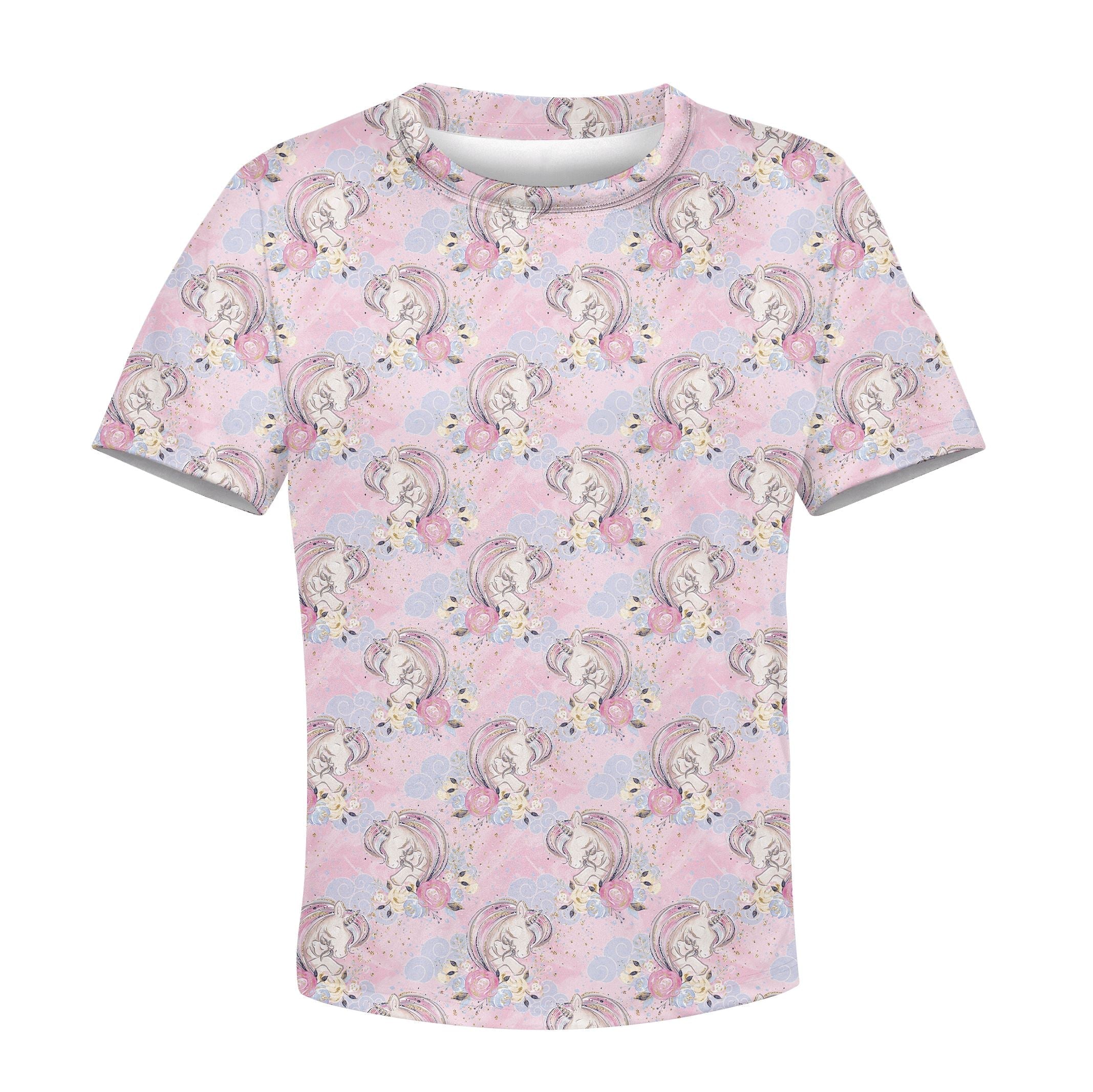 Gearhumans Graceful Unicorns And Flowers Custom Hoodies T-shirt Apparel