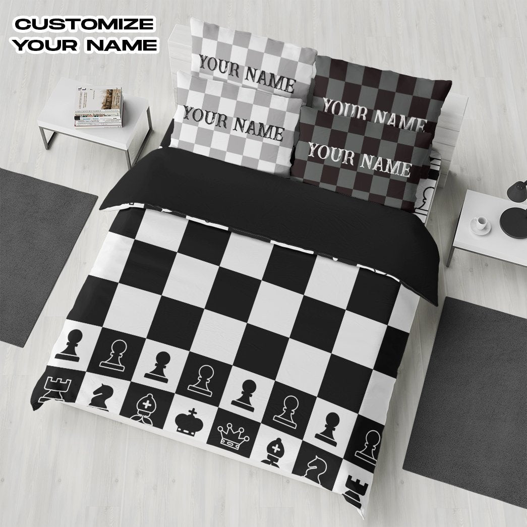 Gearhumans 3D Chessboard Custom Name Bedding Set