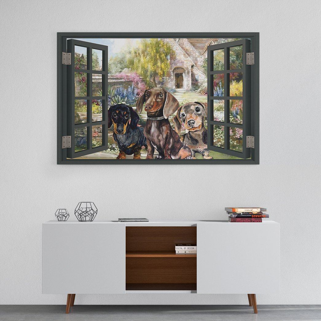 Gearhuman 3D Dachshund Window Canvas GK25019 Canvas 1 Piece Non Frame M