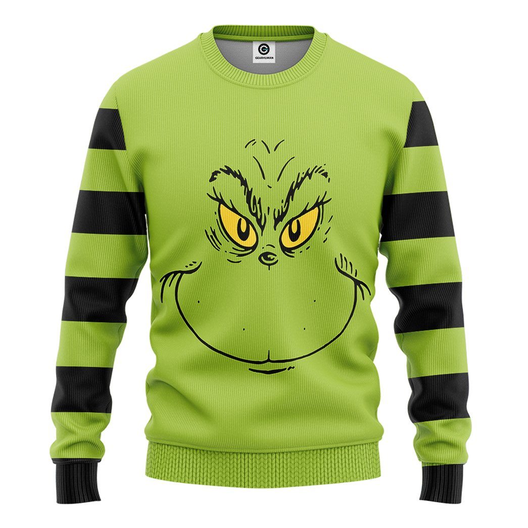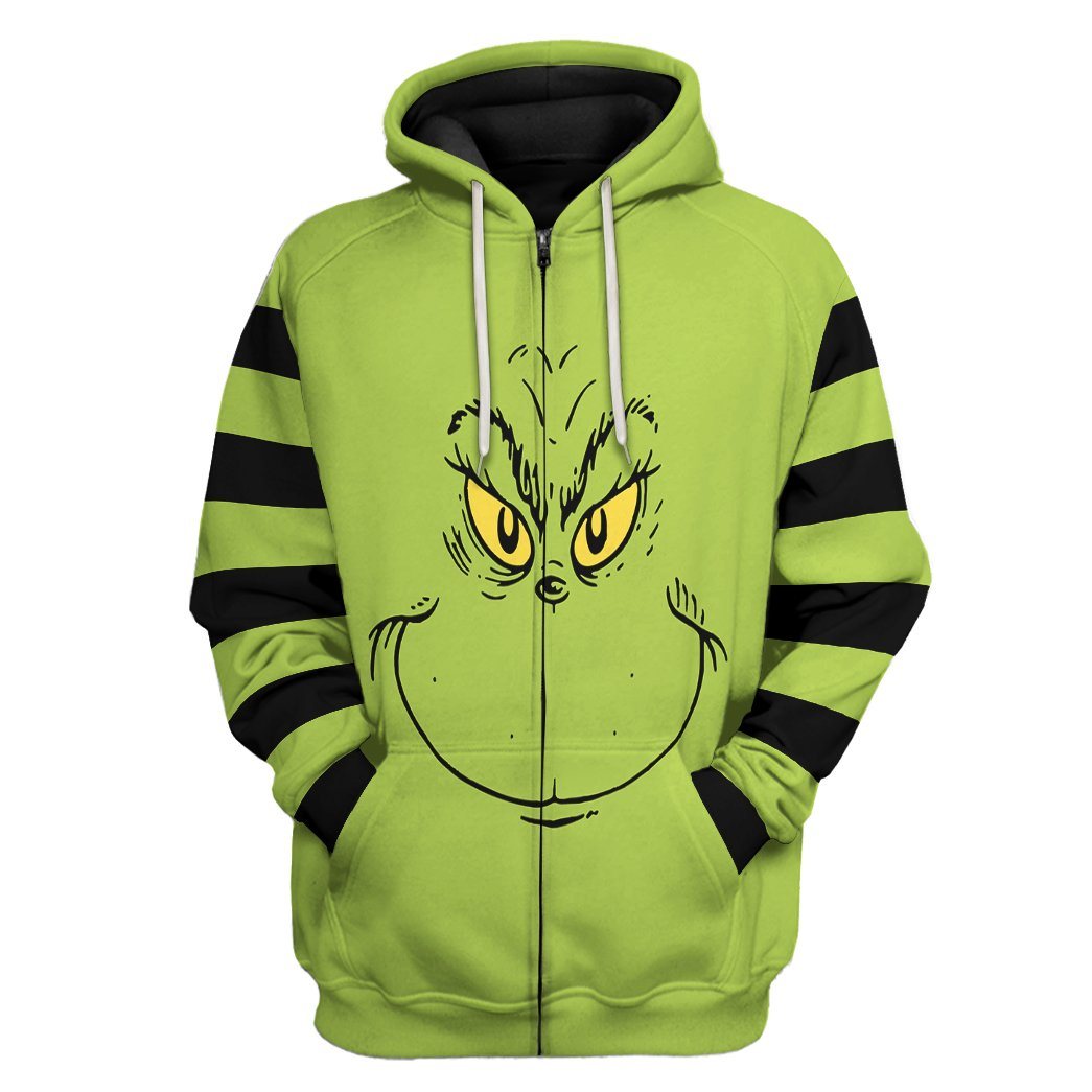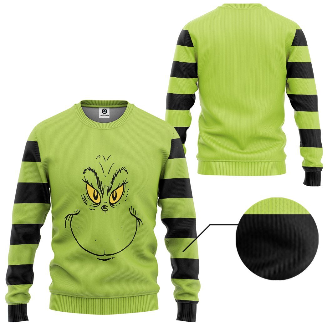 Gearhumans 3D Grinch Stripes Tshirt Hoodie Apparel