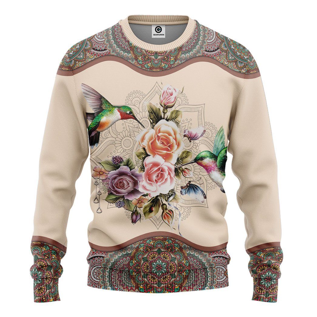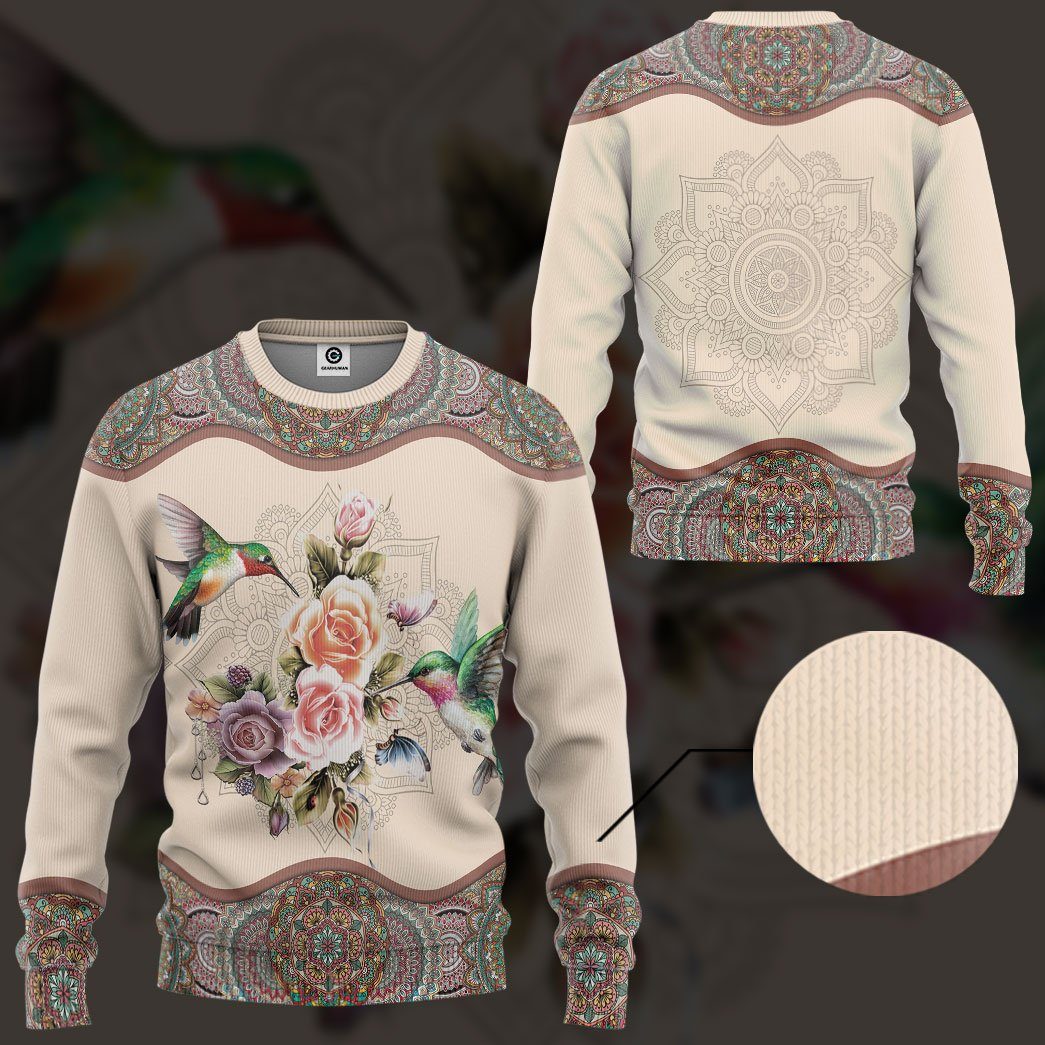 Gearhumans 3D Hummingbird Mandala Tshirt Hoodie Apparel