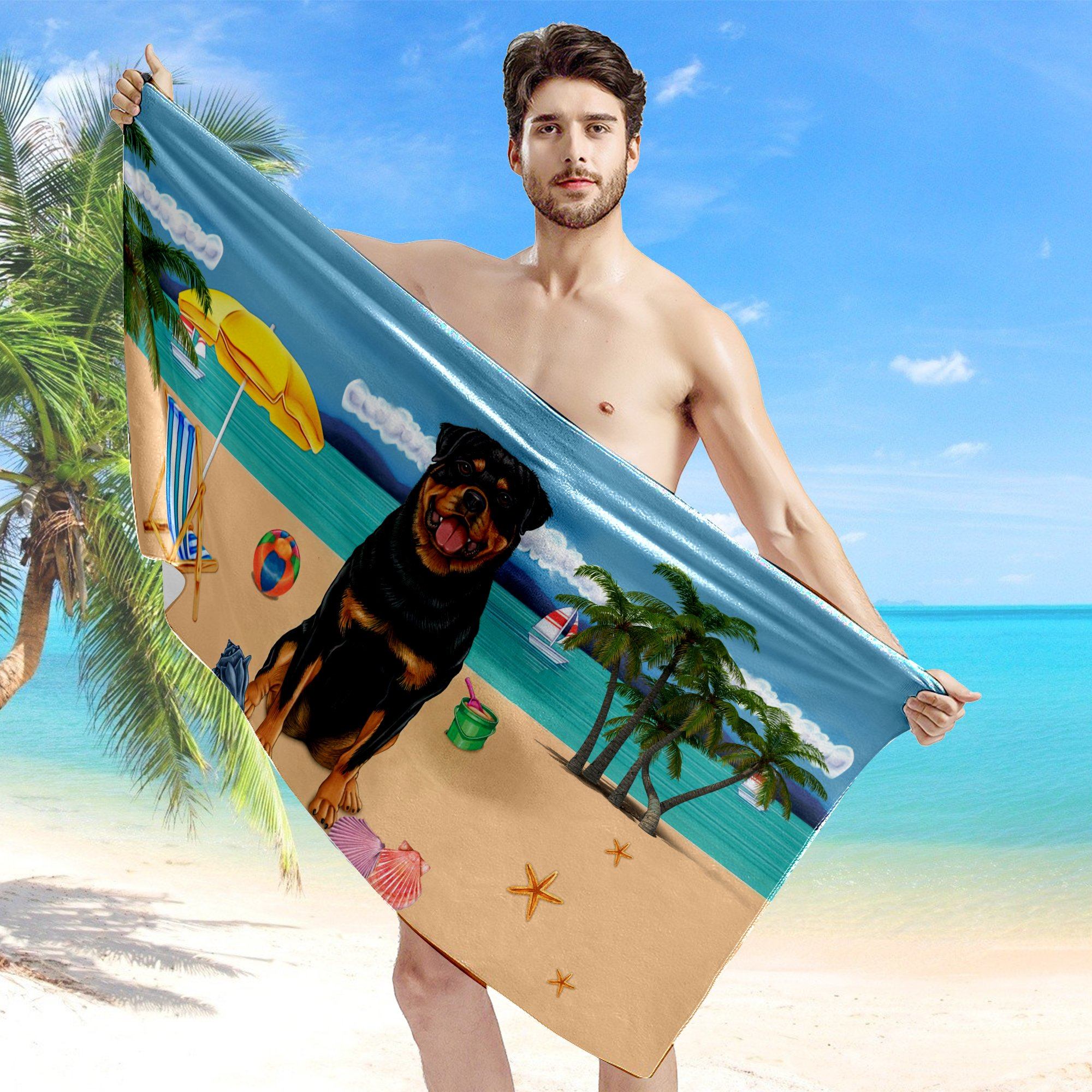 Gearhumans 3D Rottweiler Dog Custom Beach Towel