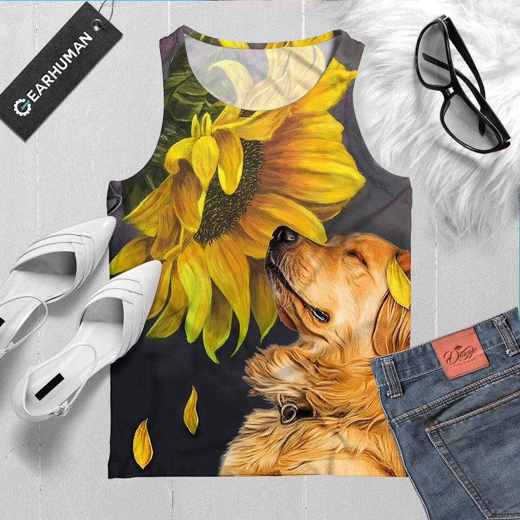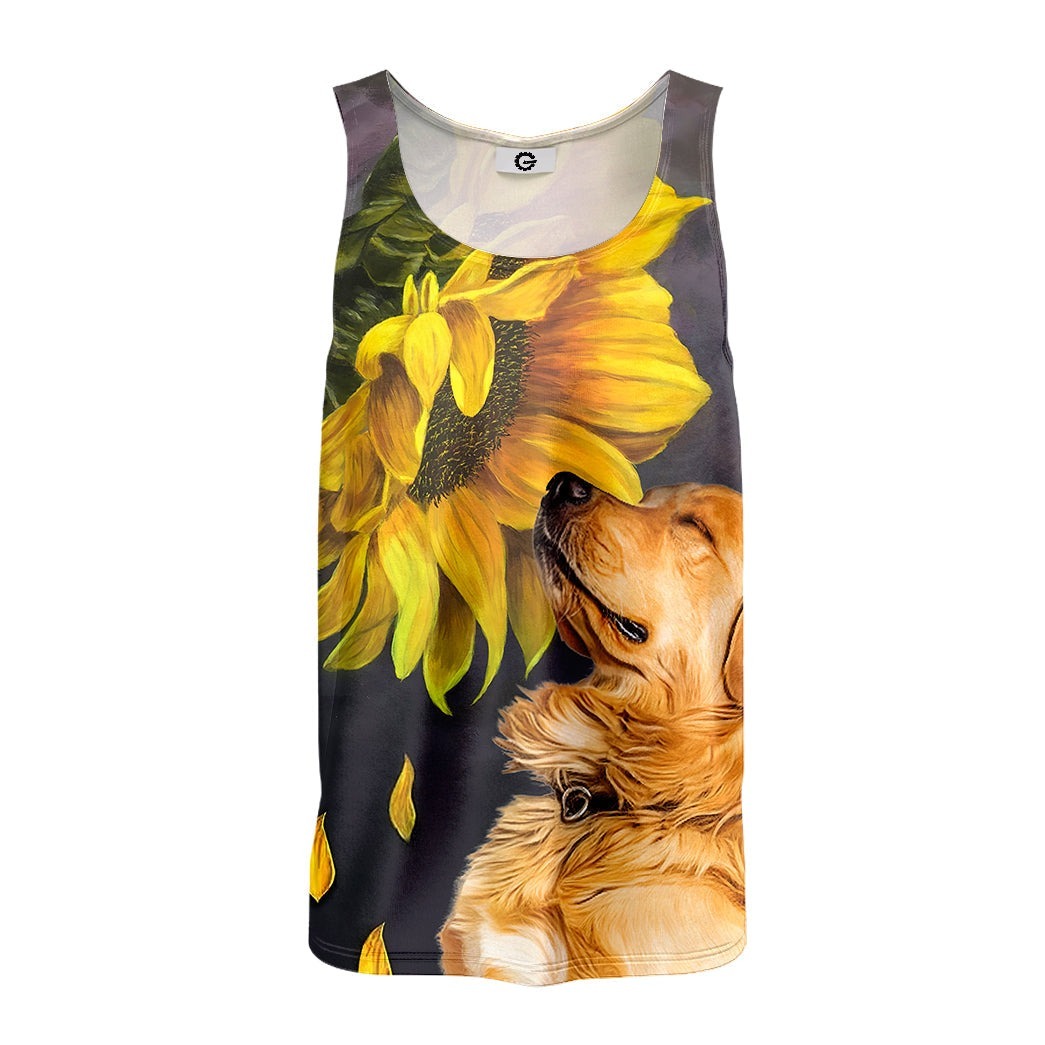 Gearhumans 3D Golden Retriever Sunflower Custom Tanktop