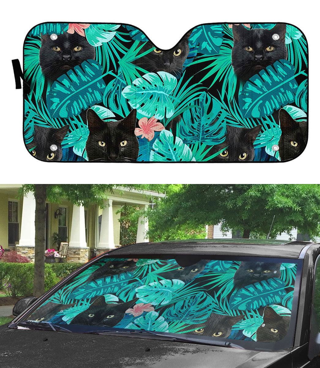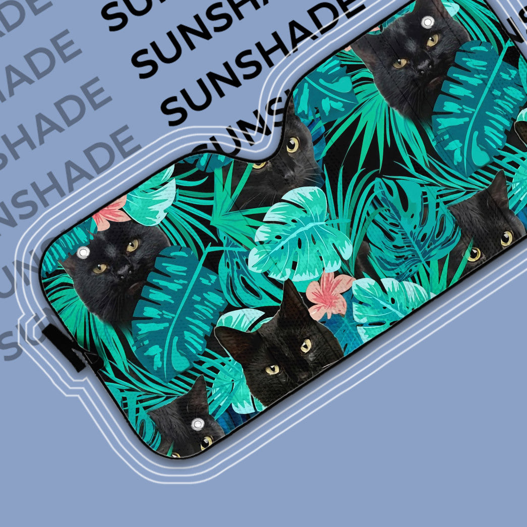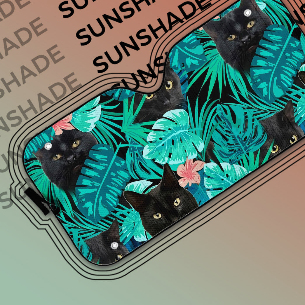 Gearhumans 3D Black Cat Tropical Car Auto Sunshade