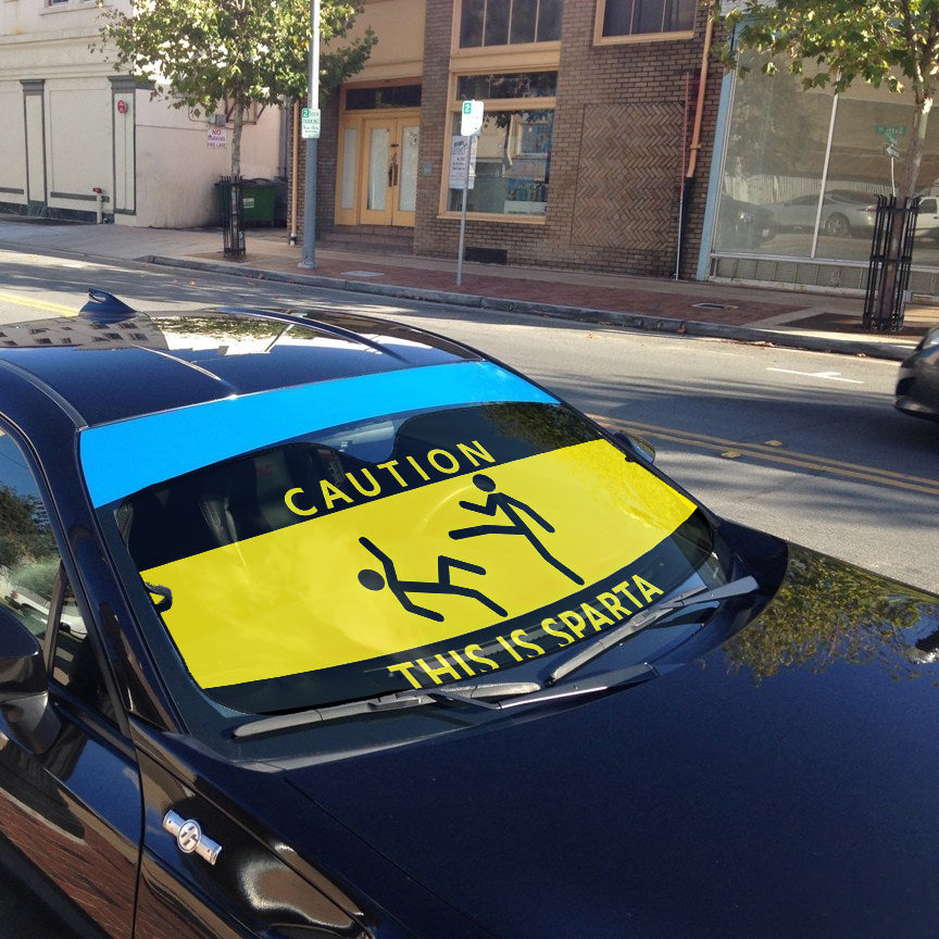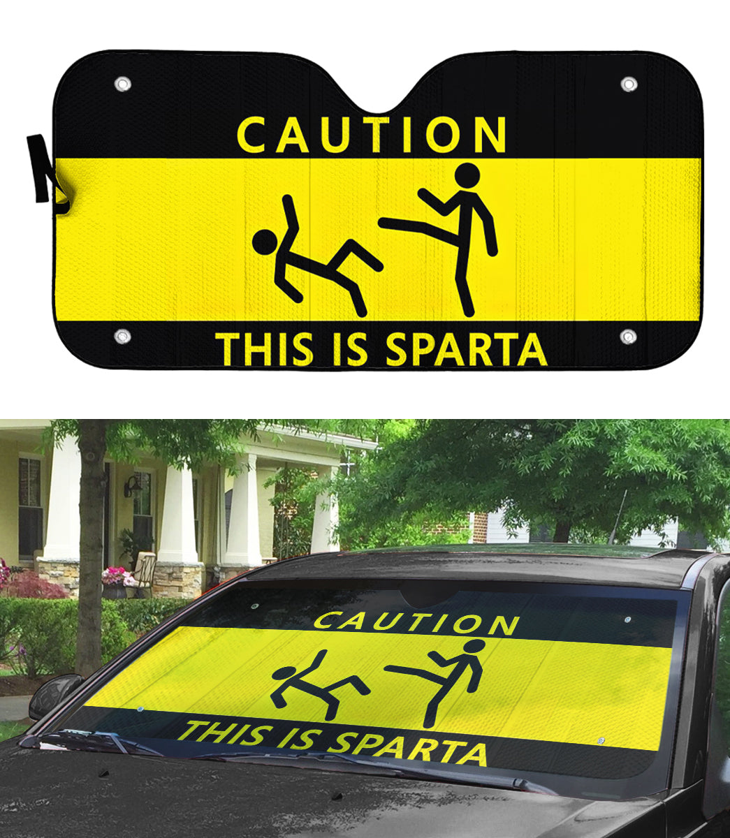 Gearhumans 3D Caution This Is Sparta Auto Sunshade