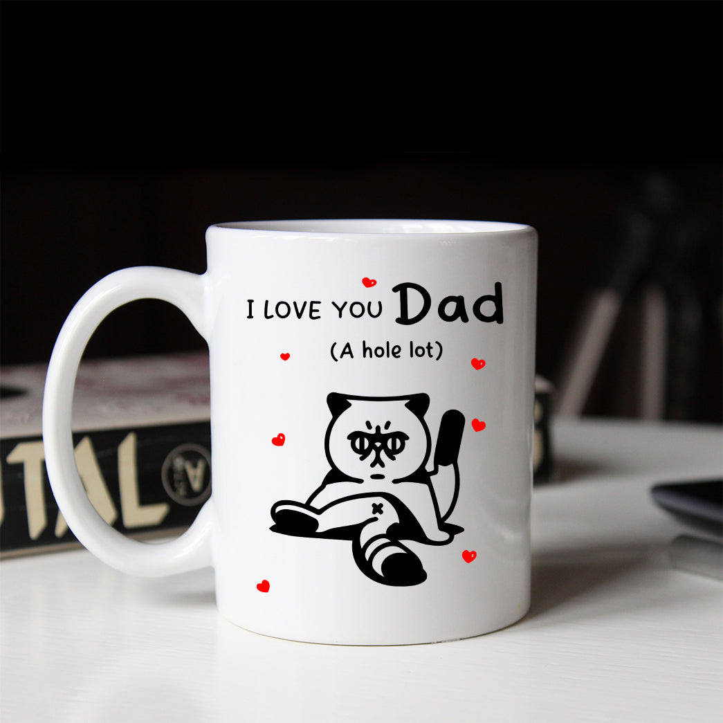 Gearhumans 3D I Love You Dad A Hole Lot Silvy Cat Mug