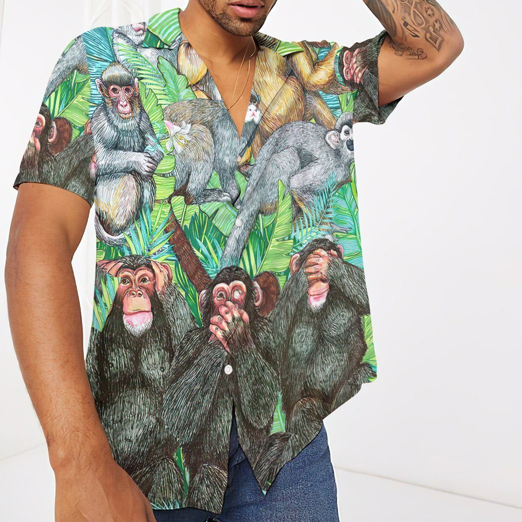 Gearhumans 3D Monkey Tropical Hawaii Shirt ZC13047 Hawai Shirt Short Sleeve Shirt S