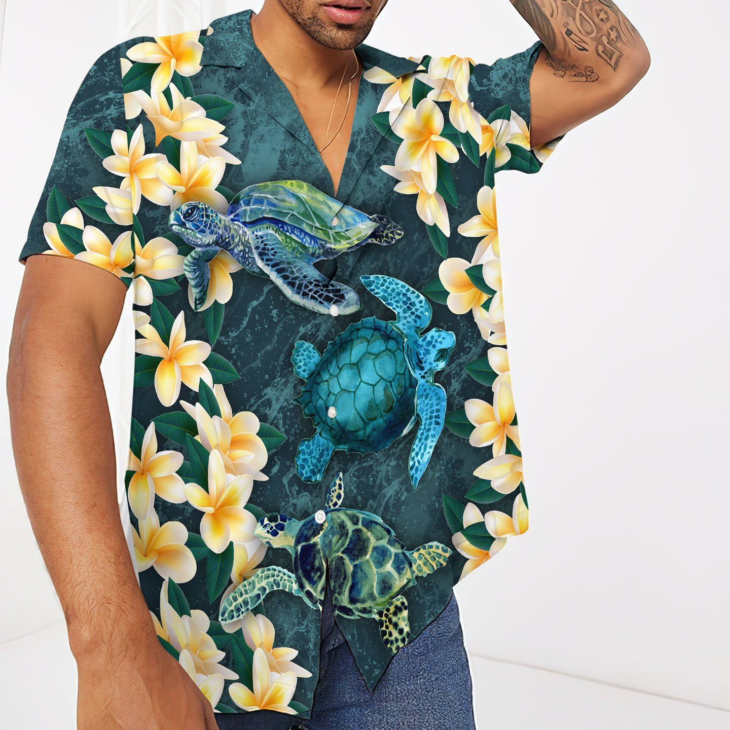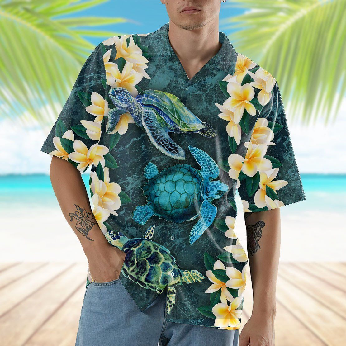 Gearhumans 3D Plumeria Turtle Hawaii Shirt