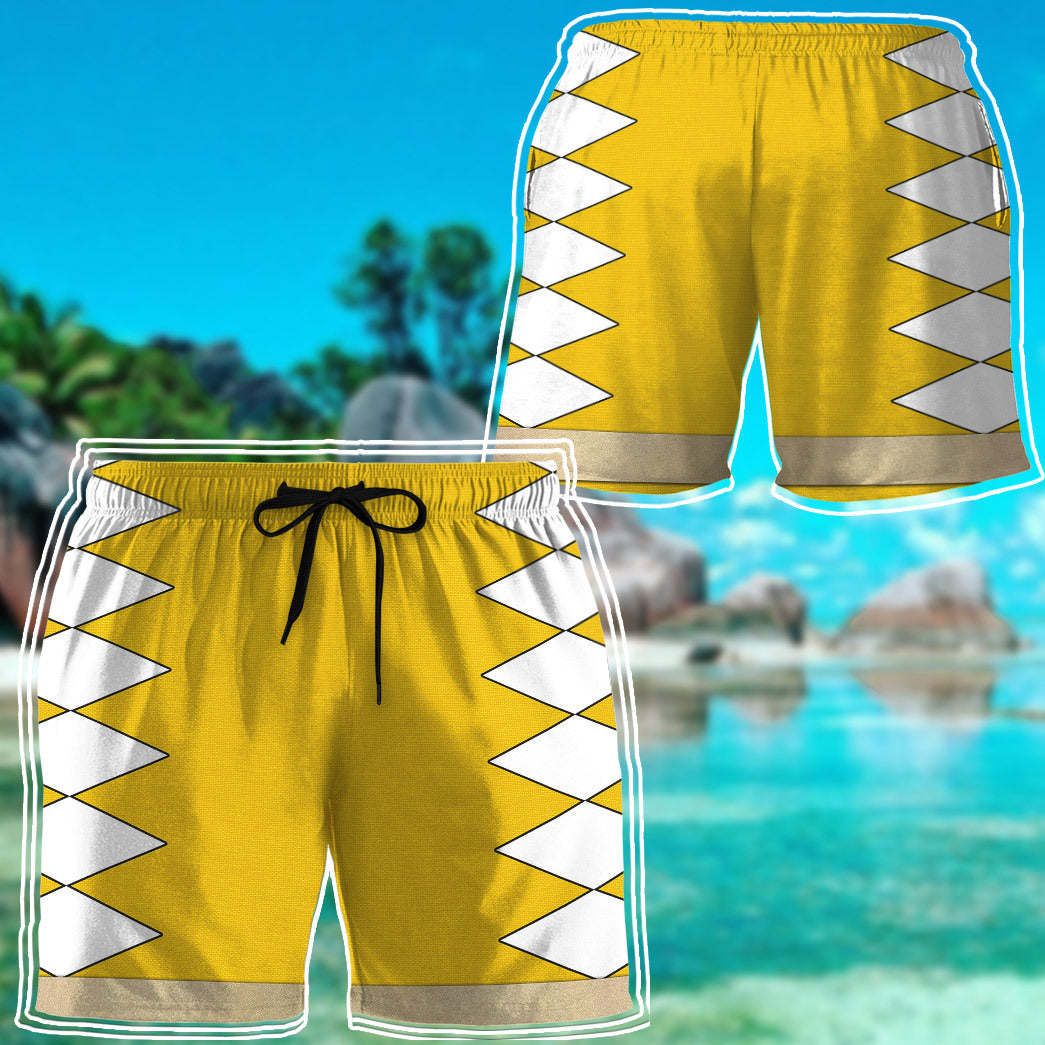 Gearhumans 3D Power Ranger Yellow Dino Thunder Shorts