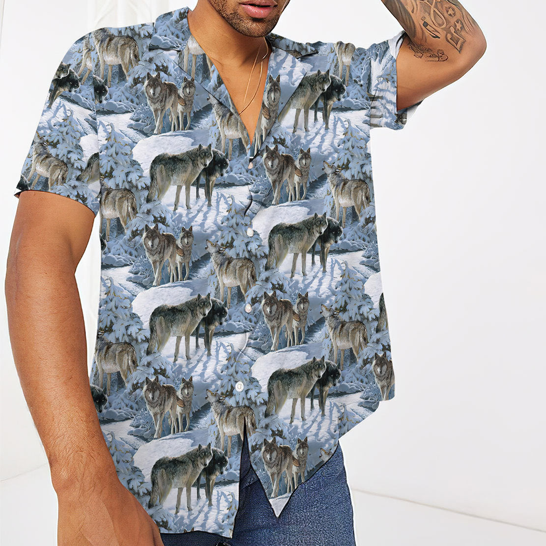 Gearhumans 3D Wolf Hawaii Shirt