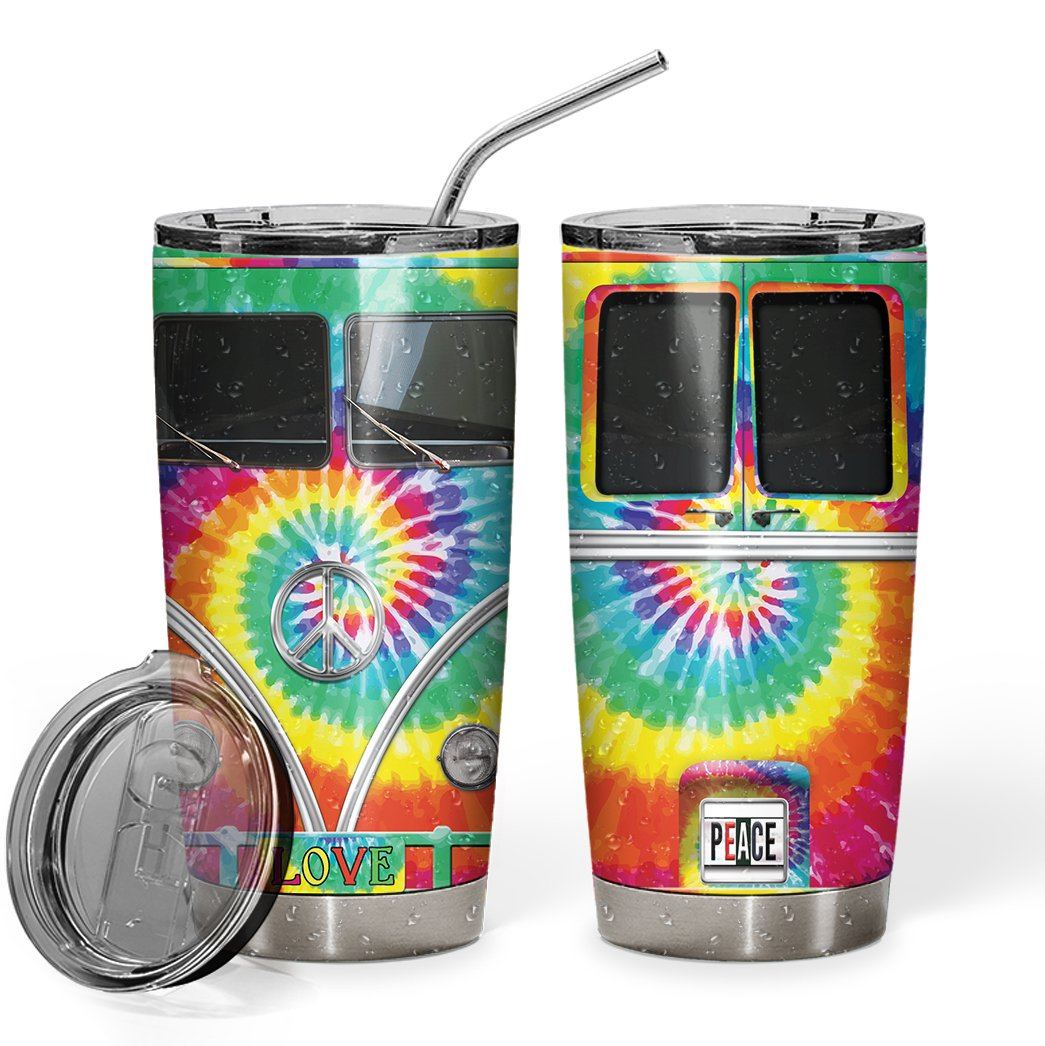 Gearhumans 3D Tie-Dye Hippie Van Custom Design Vacuum Insulated Tumbler