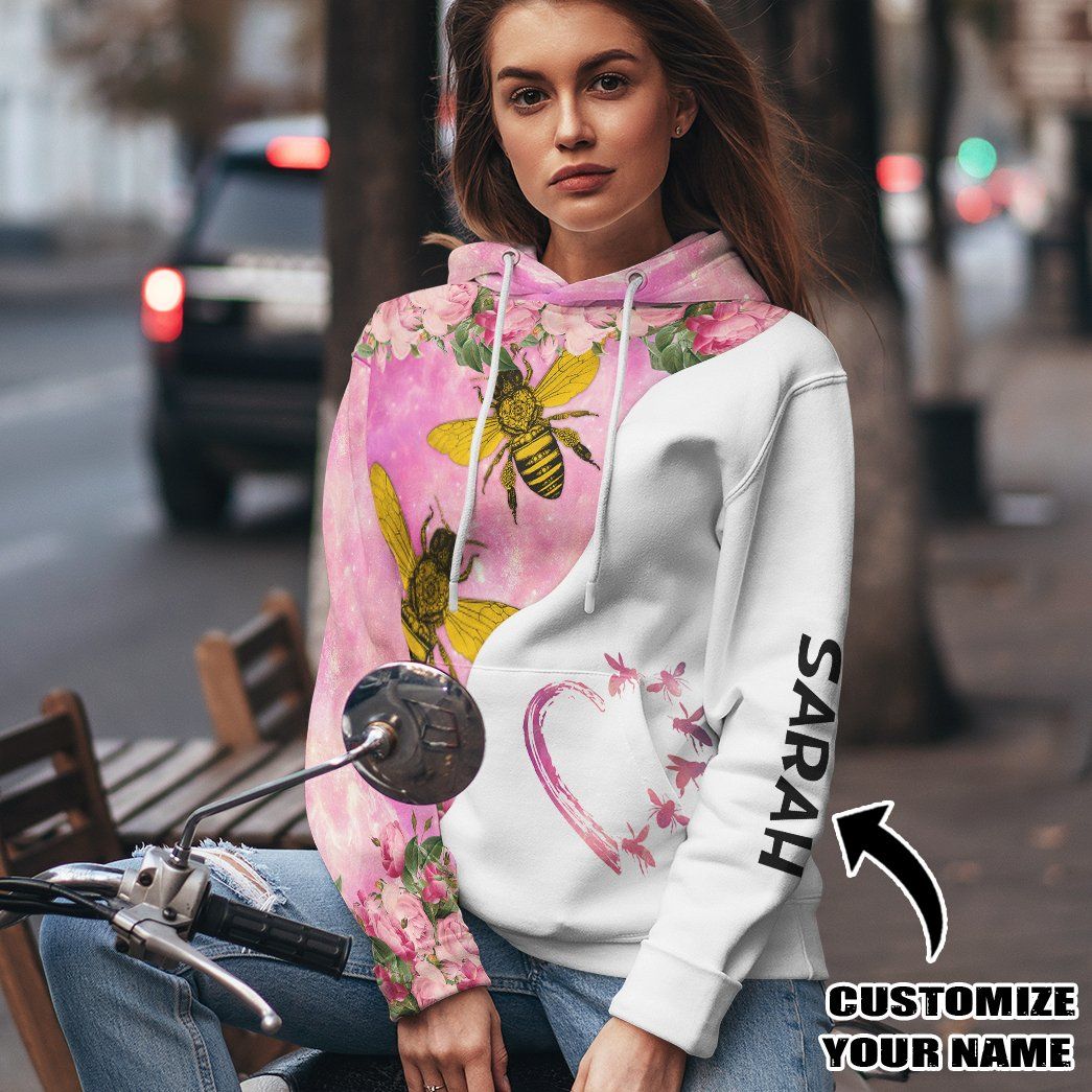 Gearhumans 3D Bee Love Pink Heart Custom Name Tshirt Hoodie Apparel