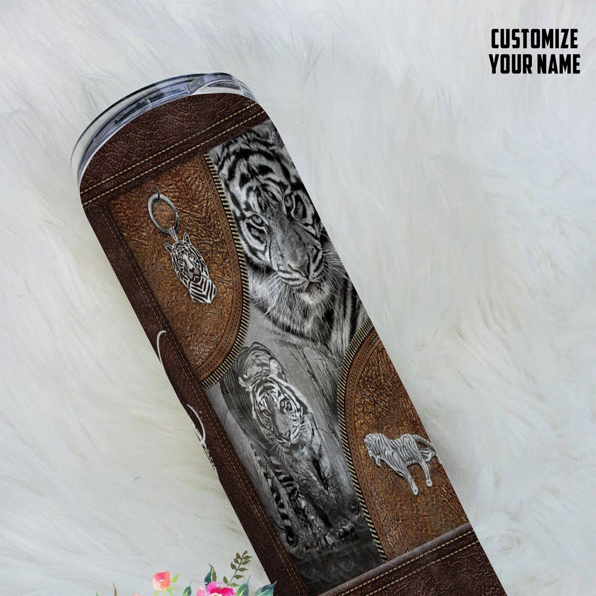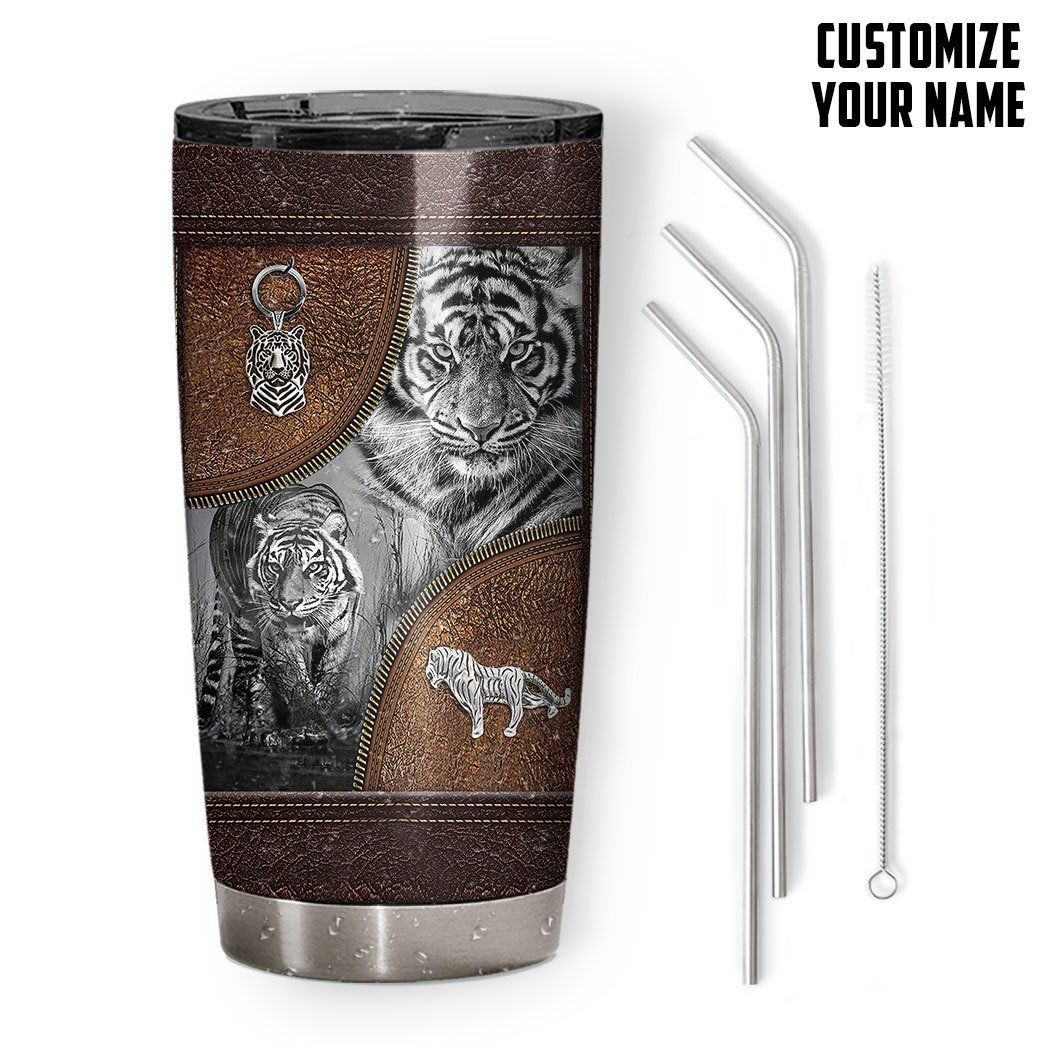 Gearhumans 3D Tiger Leather Custom Name Tumbler