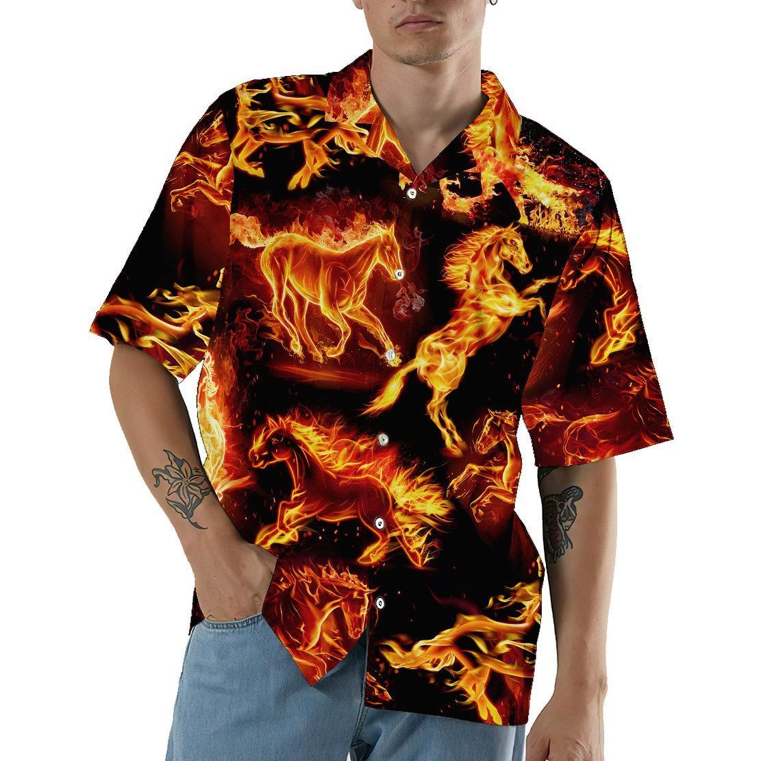 Gearhuman 3D Fire Horse Hawaii Shirt