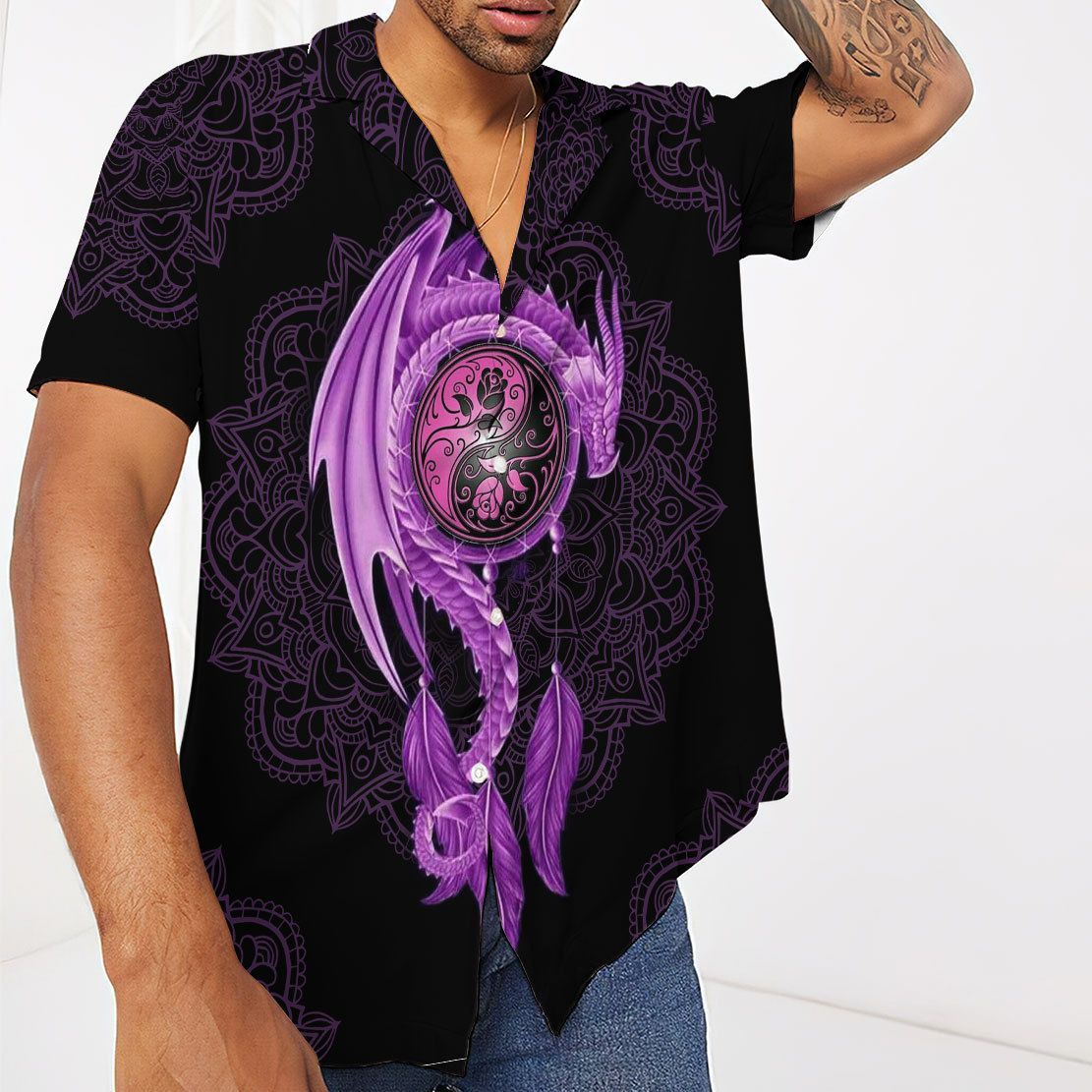Gearhuman 3D Mandala Purple Dragon Hawaii Shirt quantity