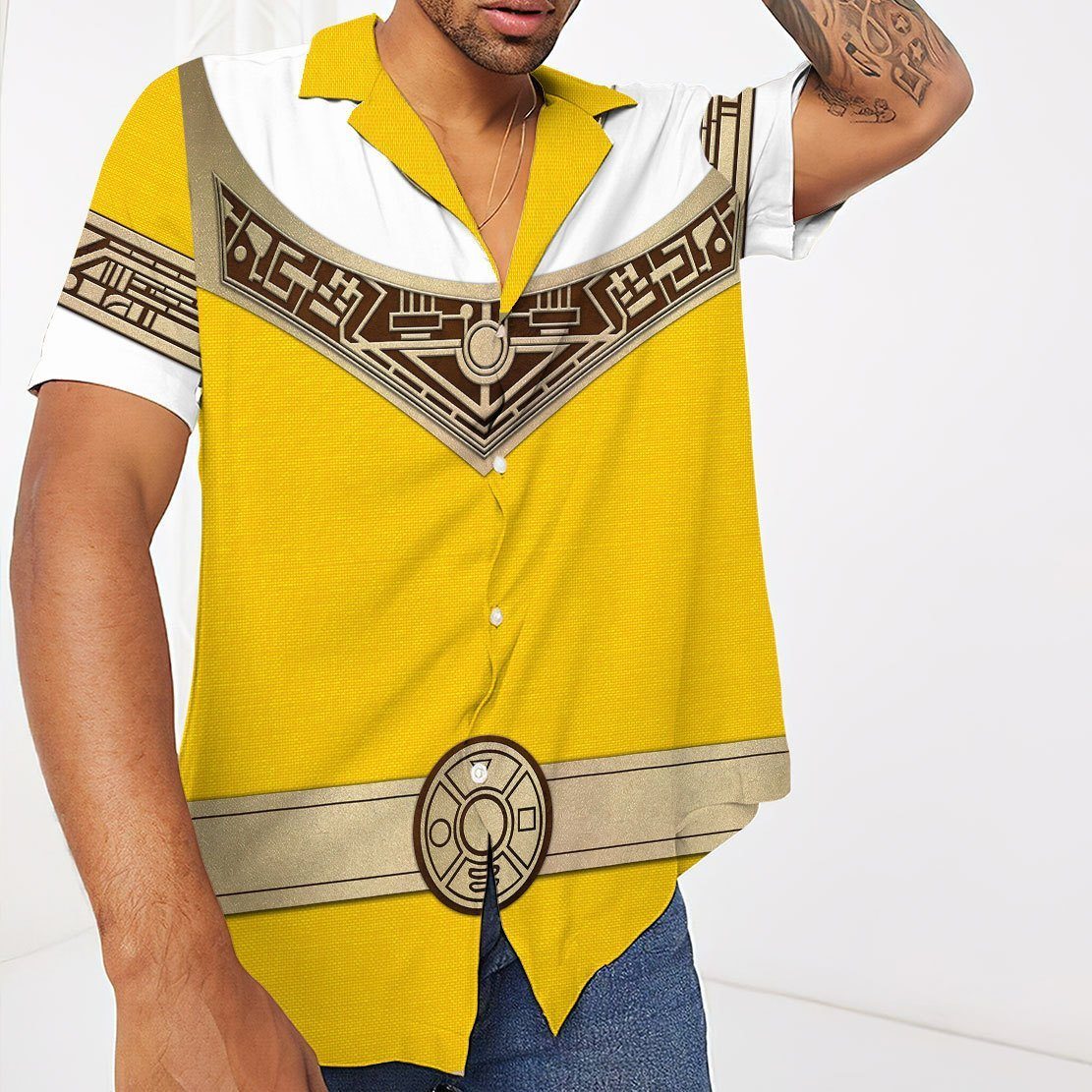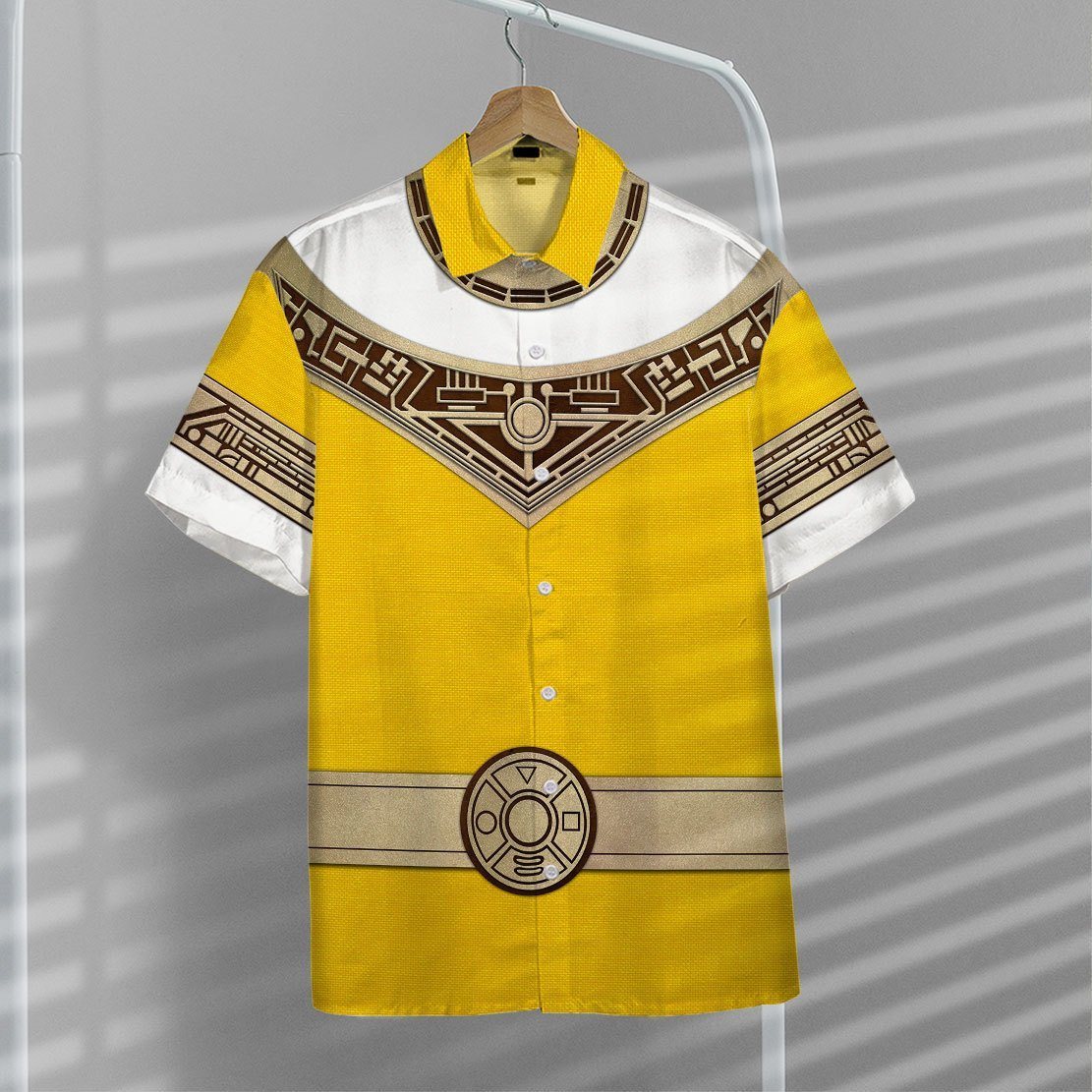 Gearhumans 3D Power Ranger Zeo Yellow Hawaii Shirt ZK2904214 Hawai Shirt Short Sleeve Shirt S