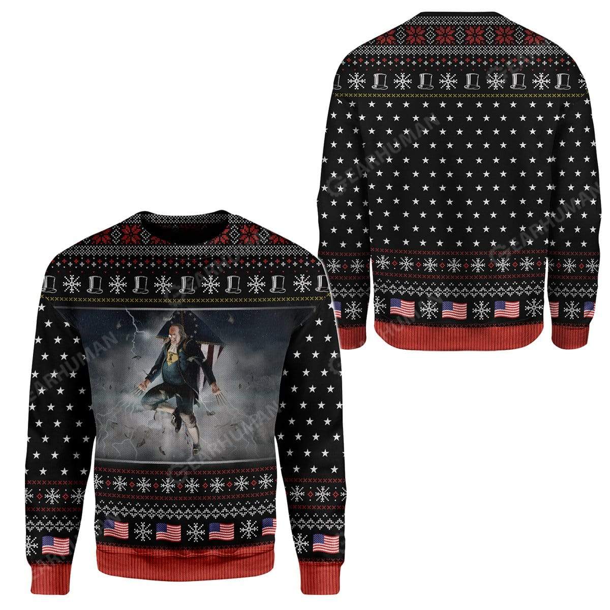 Gearhumans Ugly Ben Franklin vs. Zeus Custom Sweater Apparel