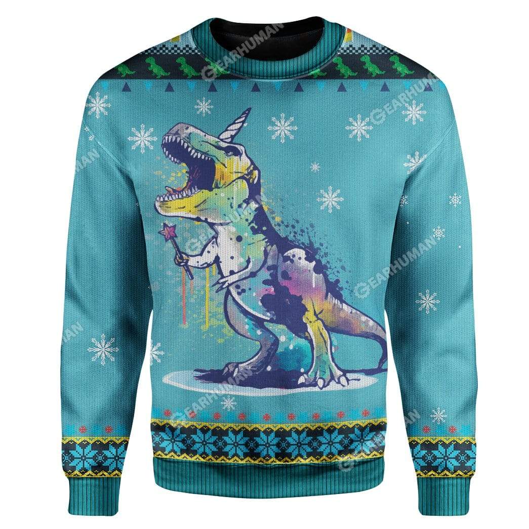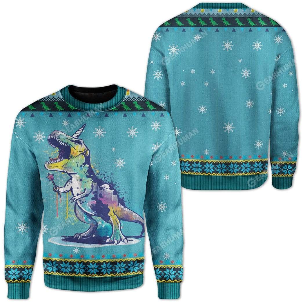 Gearhumans Ugly Christmas TUnicorn Rex Sweater Apparel