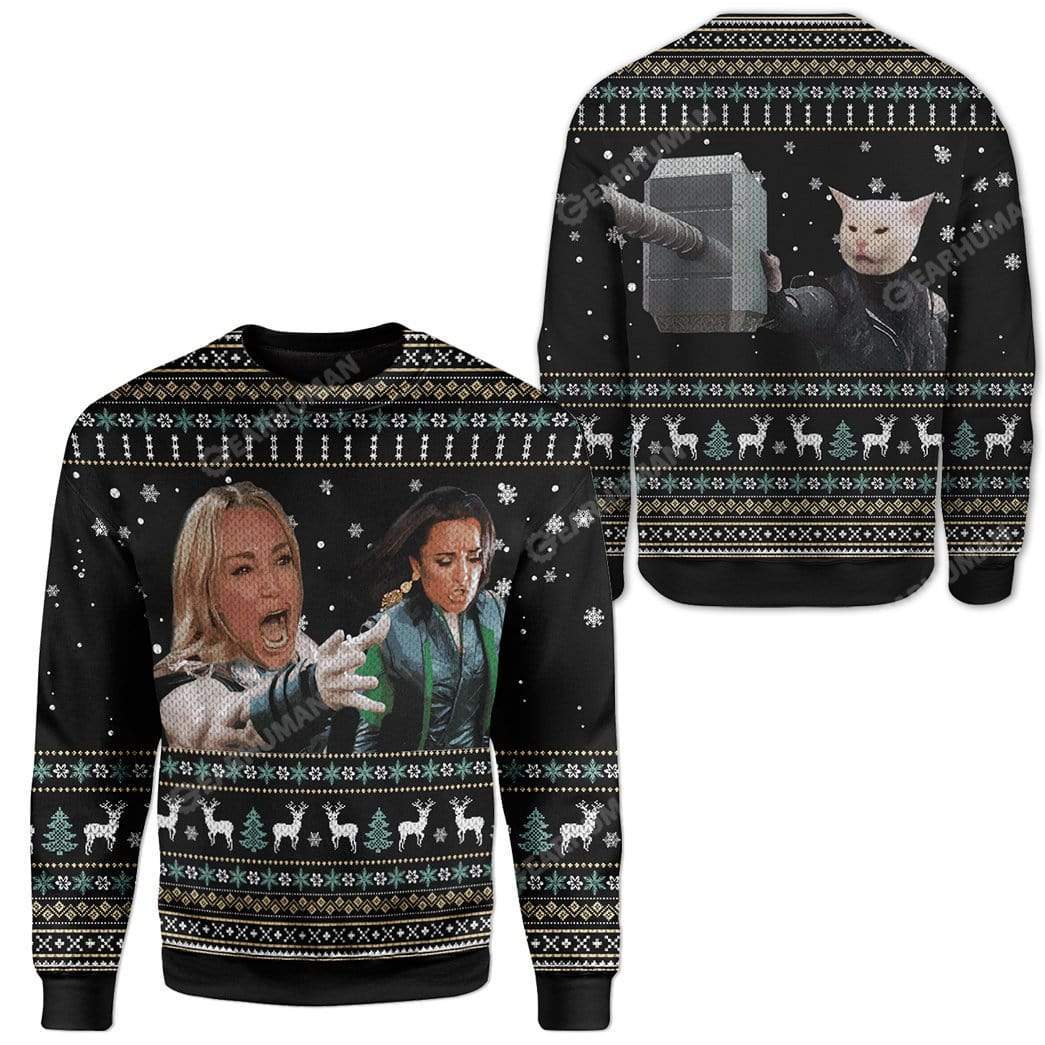 Gearhumans Ugly Woman Yelling At A Cat Custom Sweater Apparel