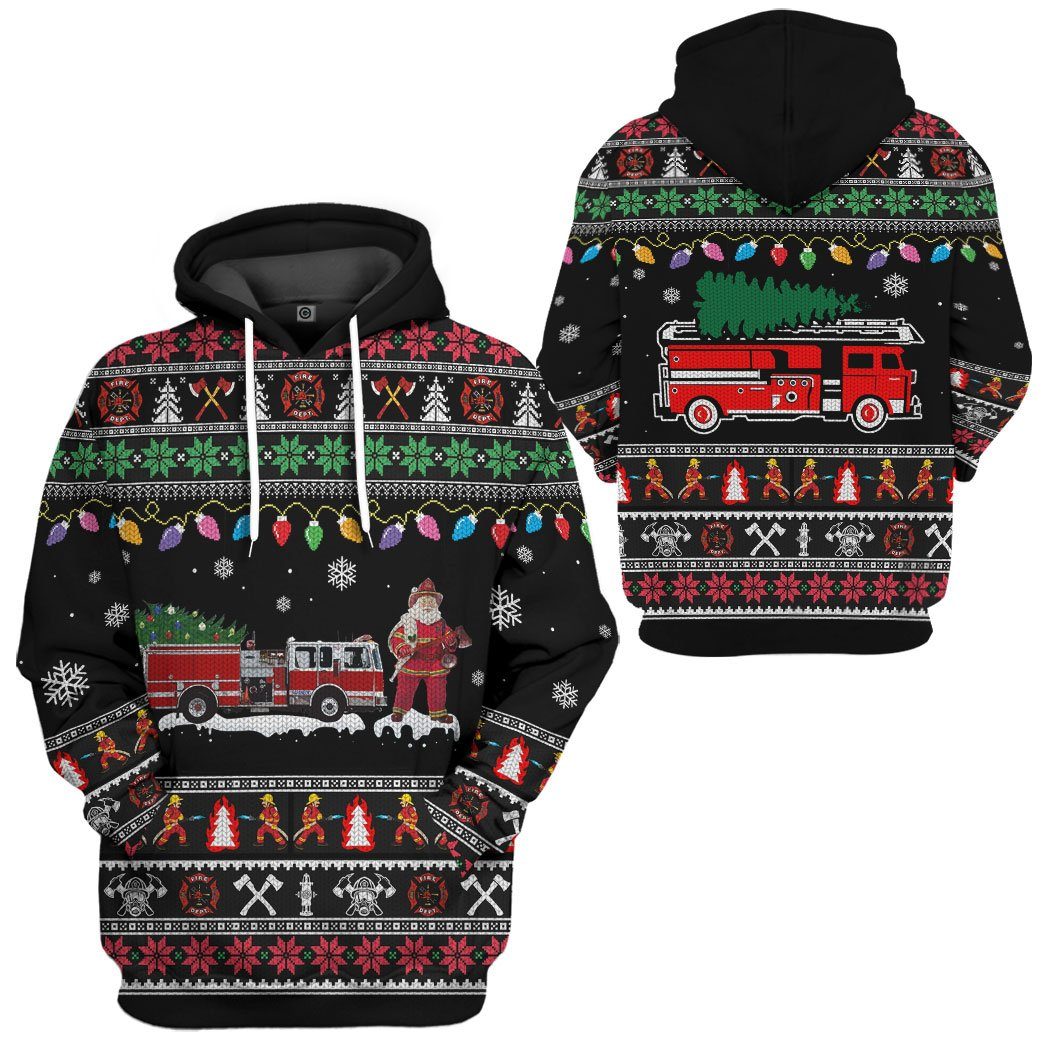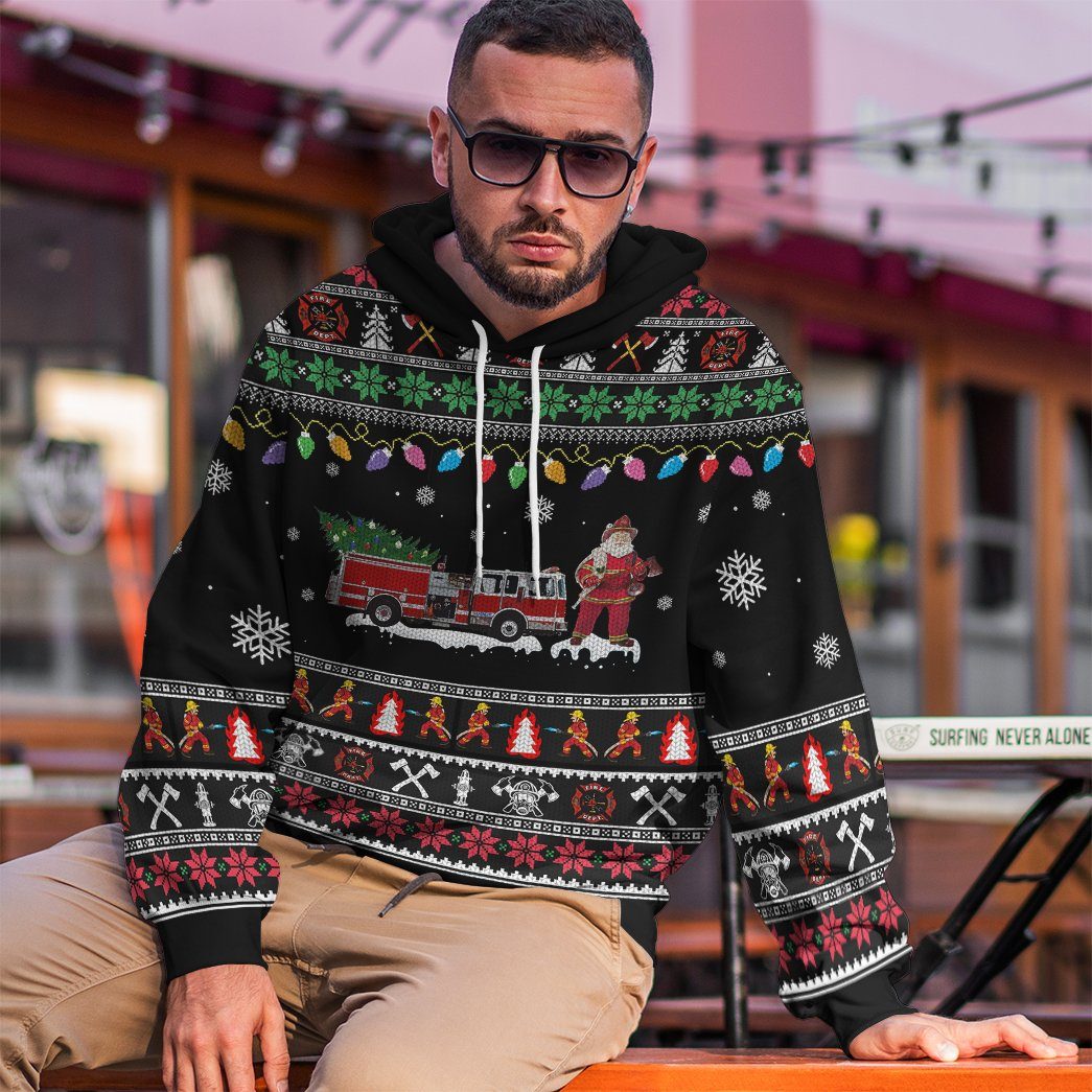Gearhumans 3D Firefighter Santa Ugly Custom Hoodie Apparel