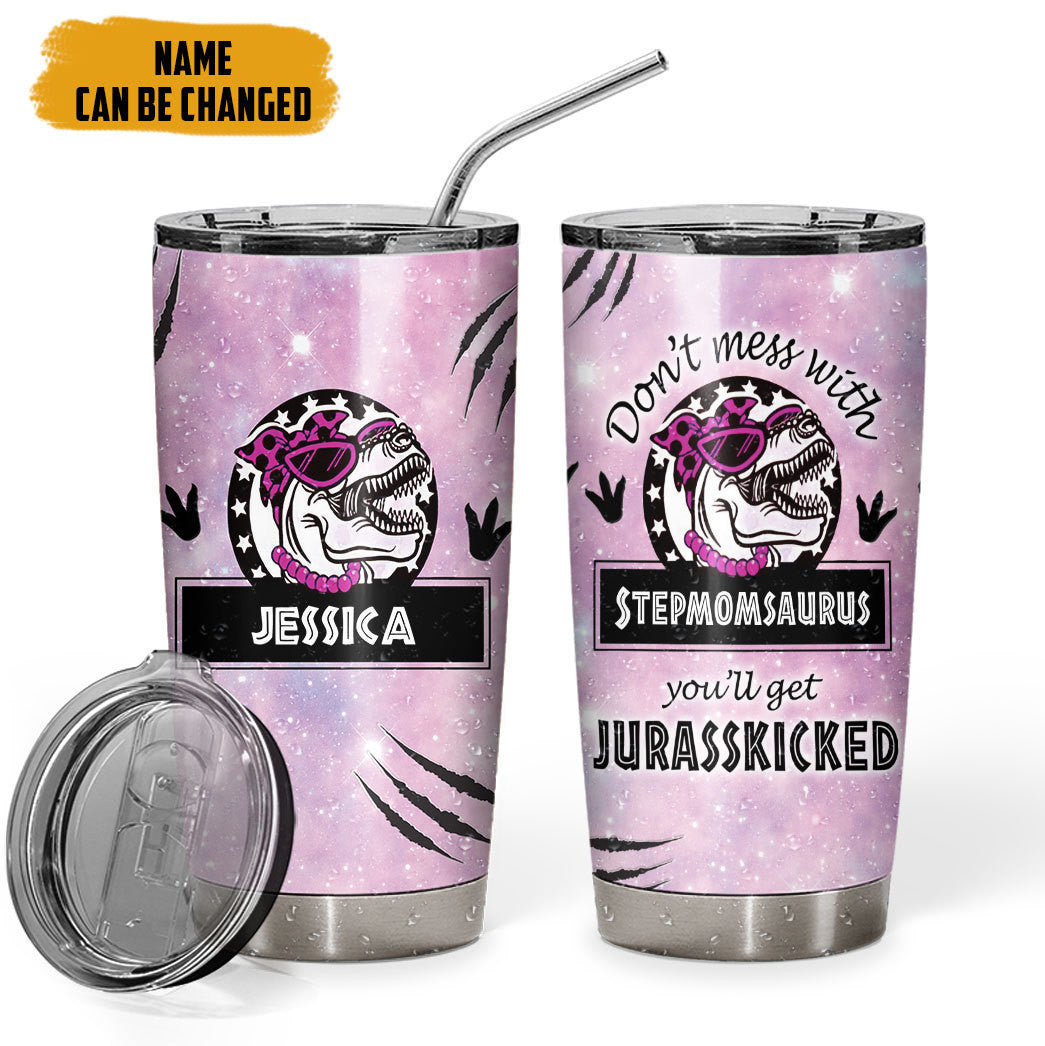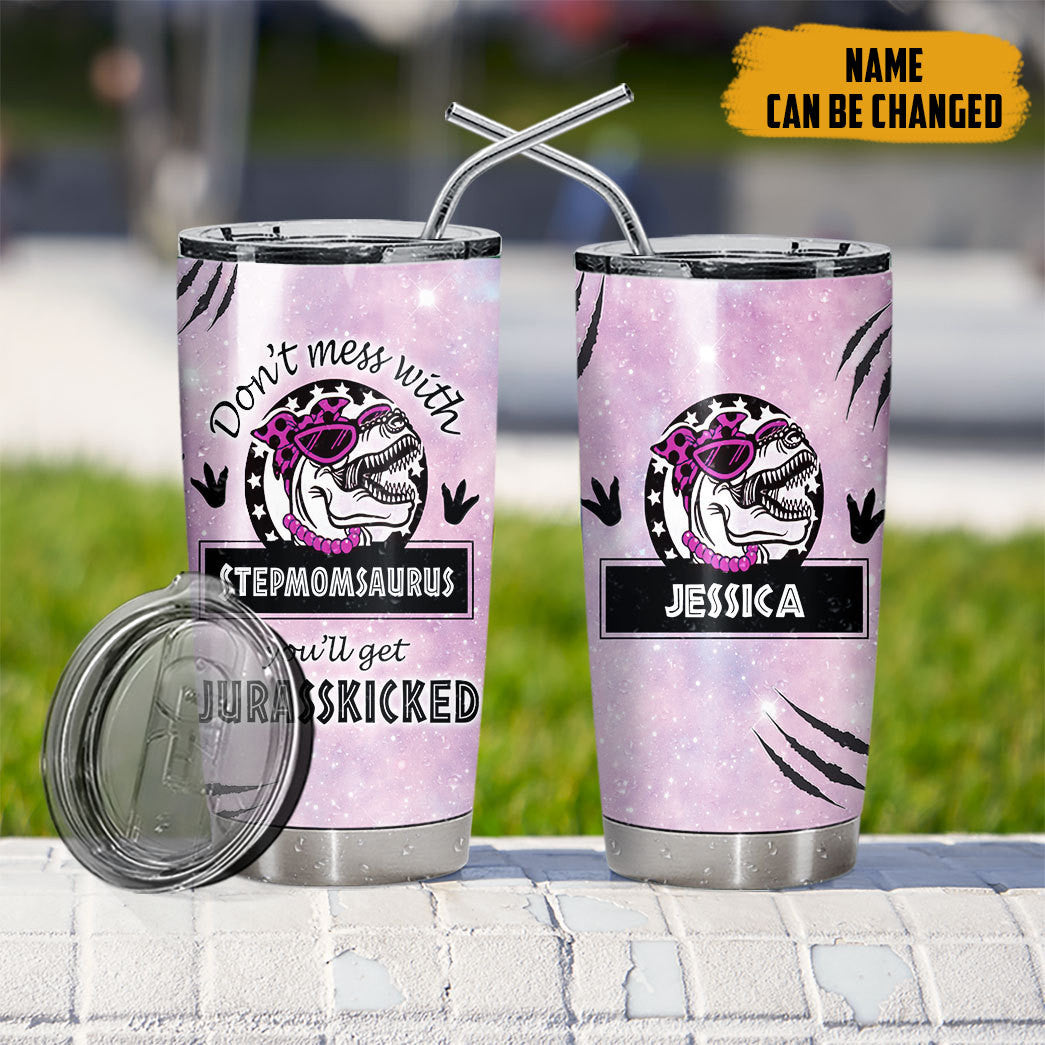 Gearhumans 3D Don’t mess with Stepmomsaurus You’ll Get Jurasskicked Custom Name Tumbler