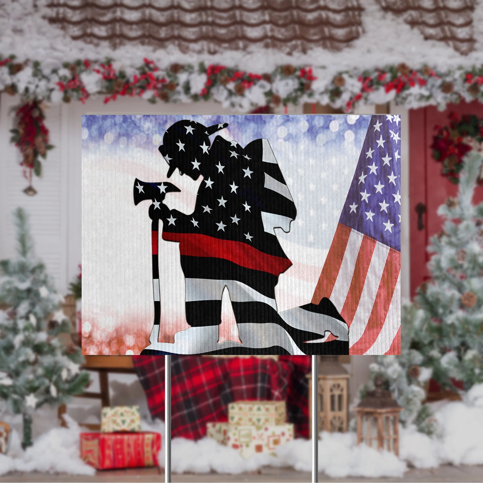 Gearhumans 3D Firefighter Patriot Day Custom Yard Sign