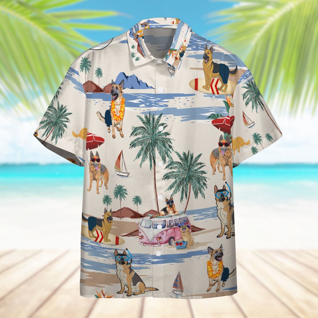 Gearhumans 3D German Shepherd Summer Beach Retro Custom Hawaiian Shirt