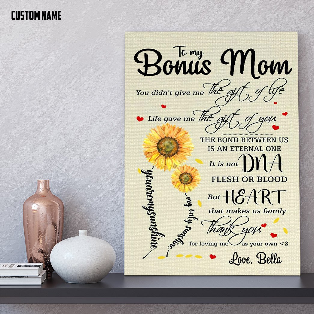Gearhumans 3D Gift For Stepmom To My Bonus Mom Custom Name Canvas