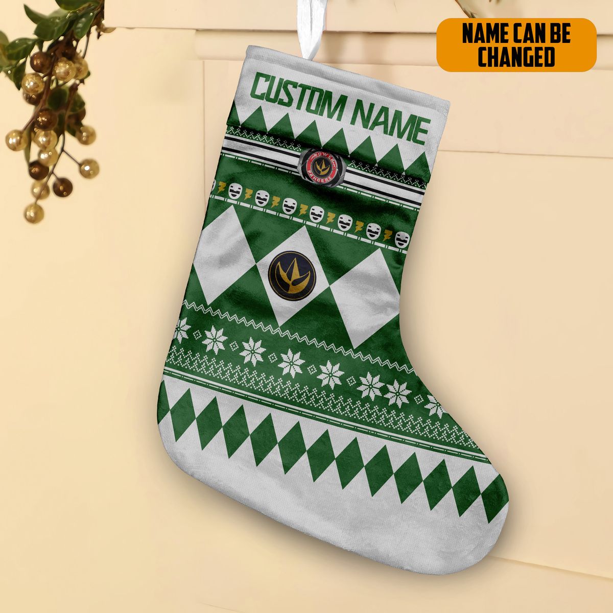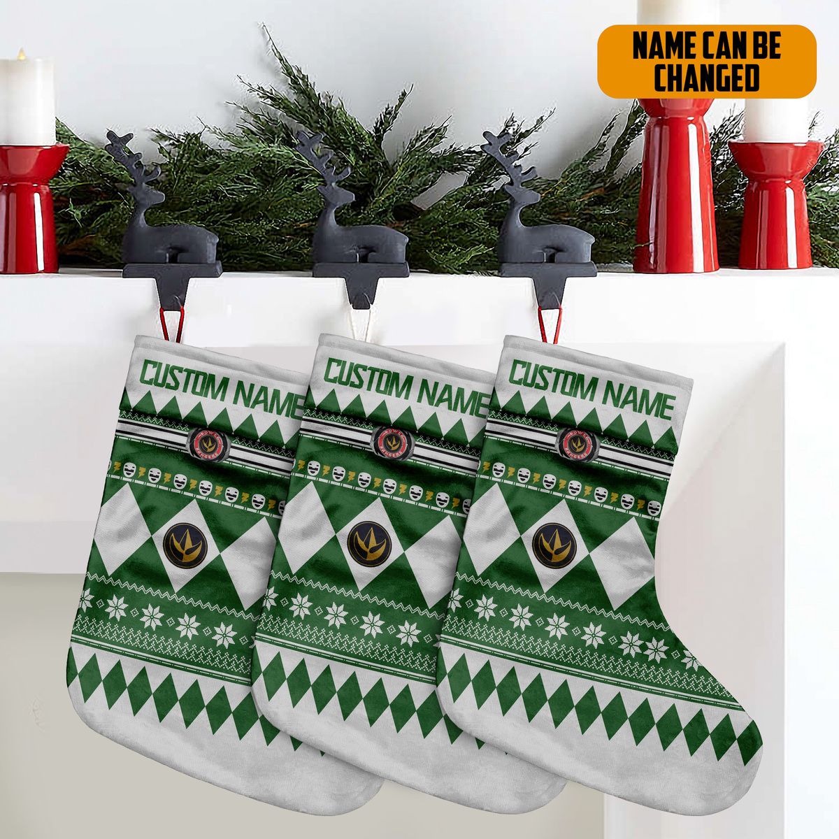 Gearhumans 3D Green Mighty Morphin Power Ranger Ugly Custom Name Christmas Socks