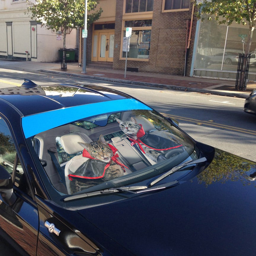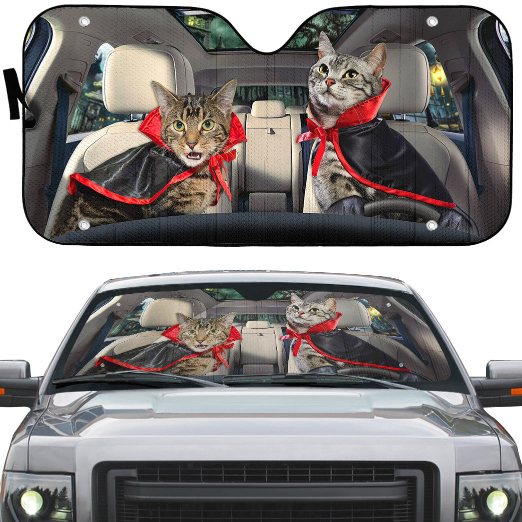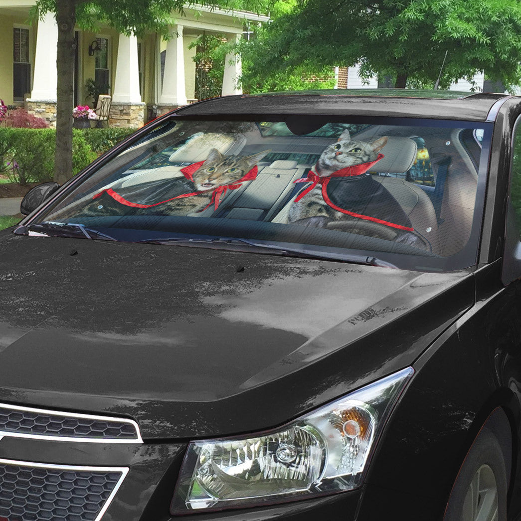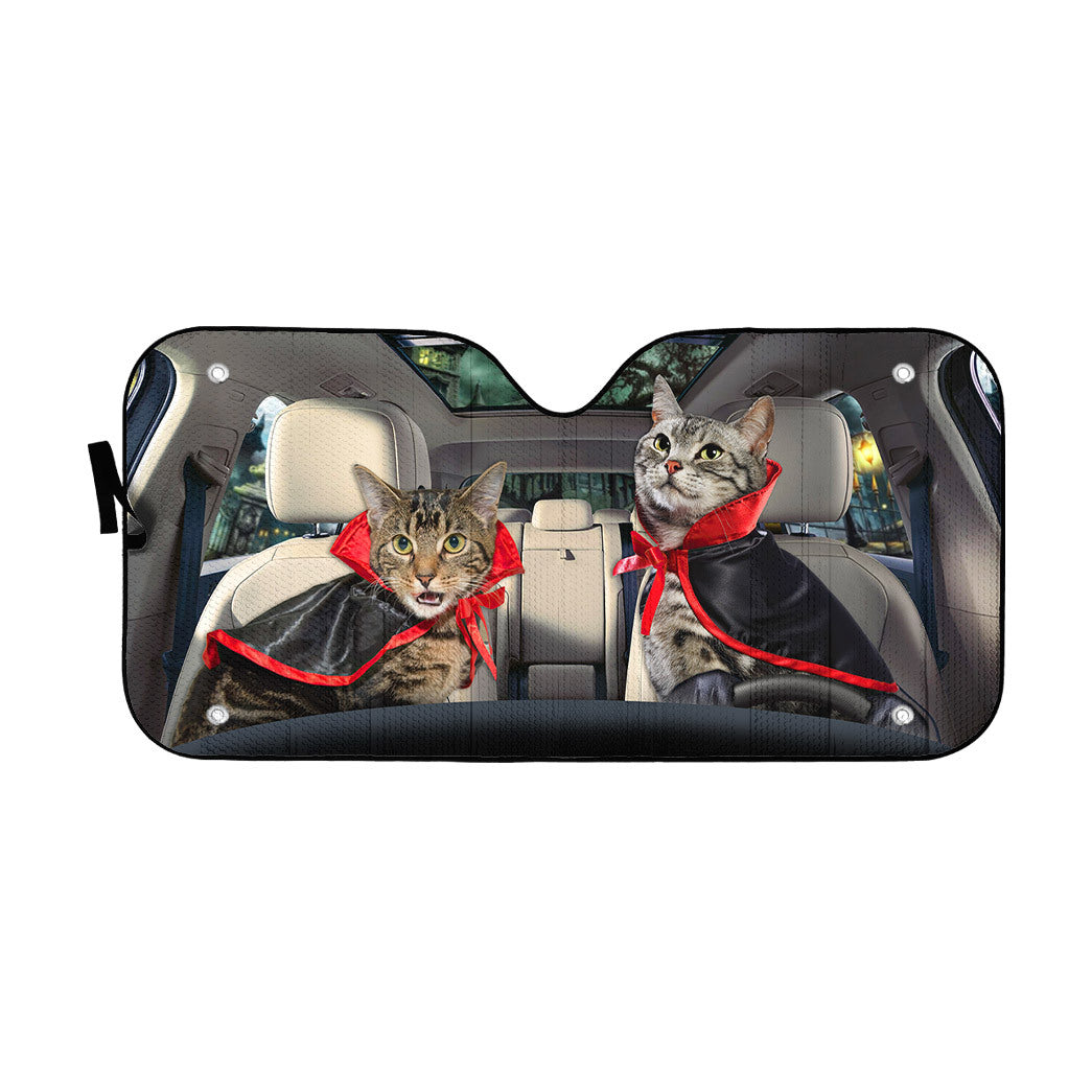 Gearhumans 3D Halloween American Shorthair Cats Vampire Custom Car Auto Sunshade