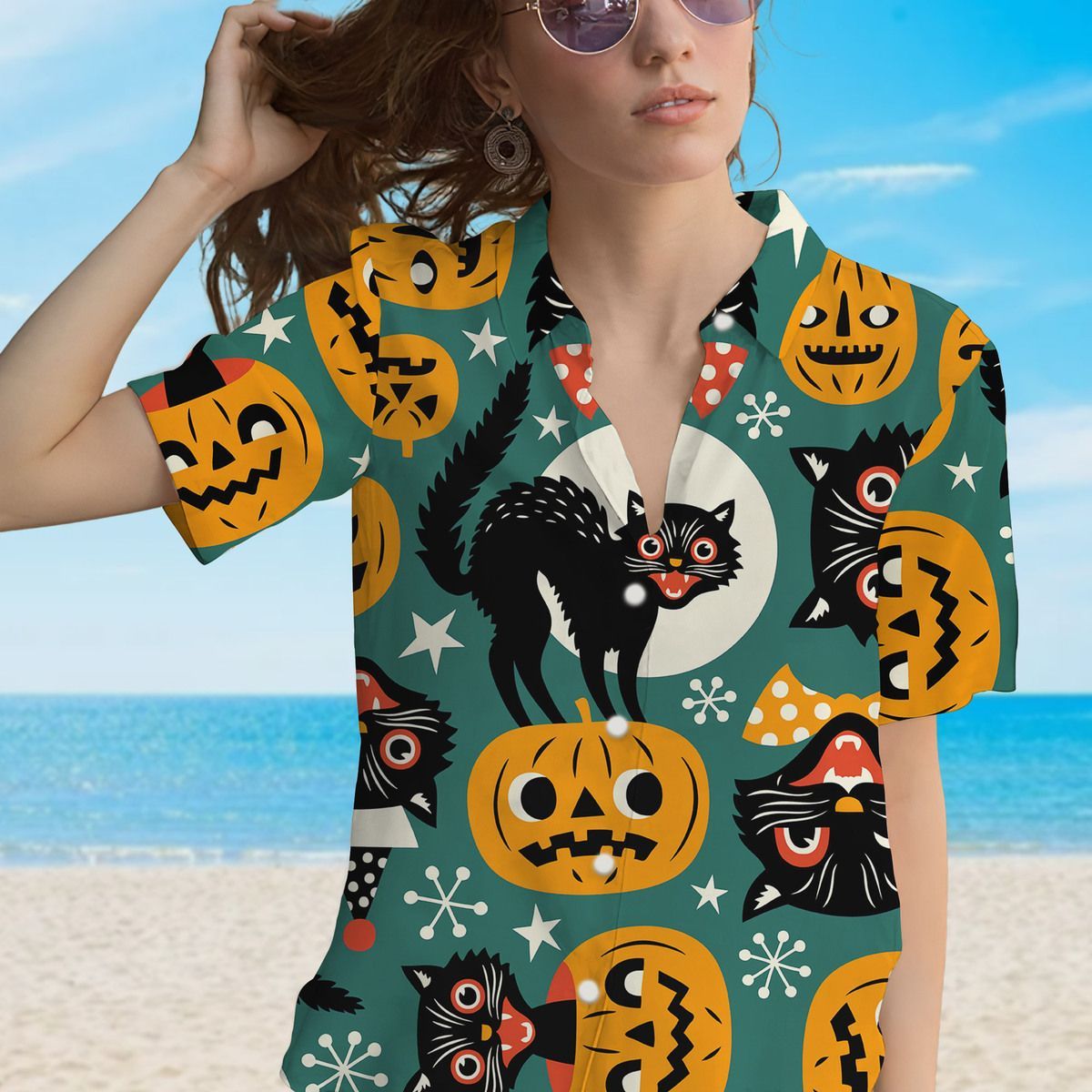 Be the first to review “Gearhumans 3D Halloween Black Cats Custom Hawaiian Shirt”