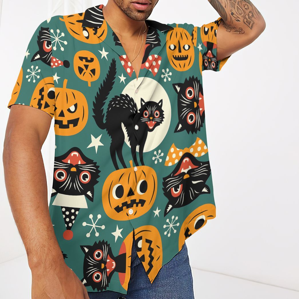 Gearhumans 3D Halloween Black Cats Custom Hawaiian Shirt
