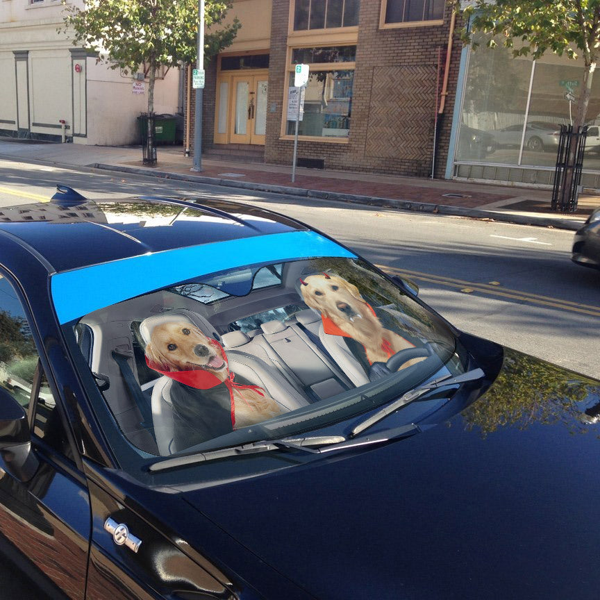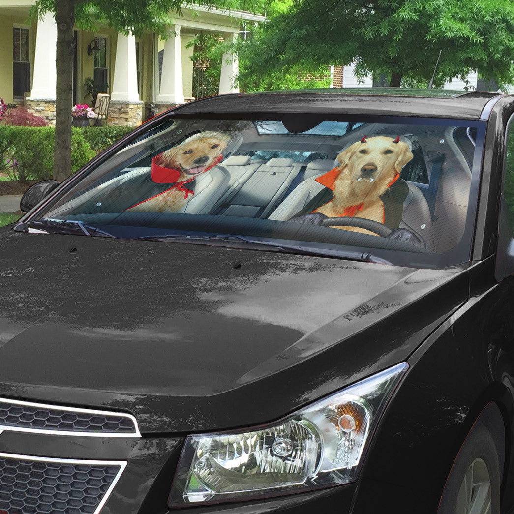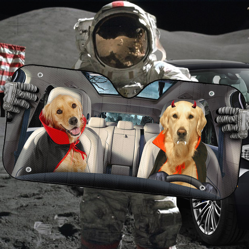 Gearhumans 3D Halloween Golden Retriever Dogs Vampire Custom Car Auto Sunshade