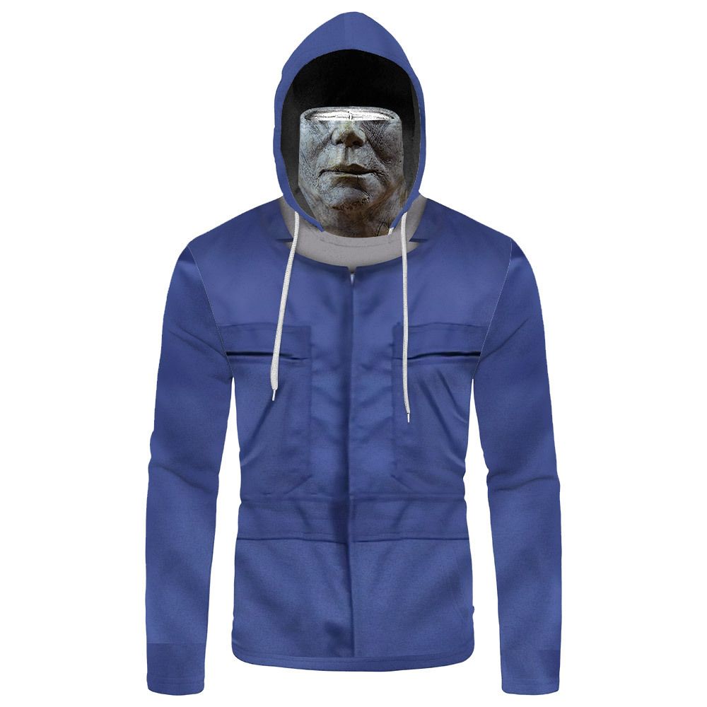 - White drawstring,mask,front pocket and black inner hood
