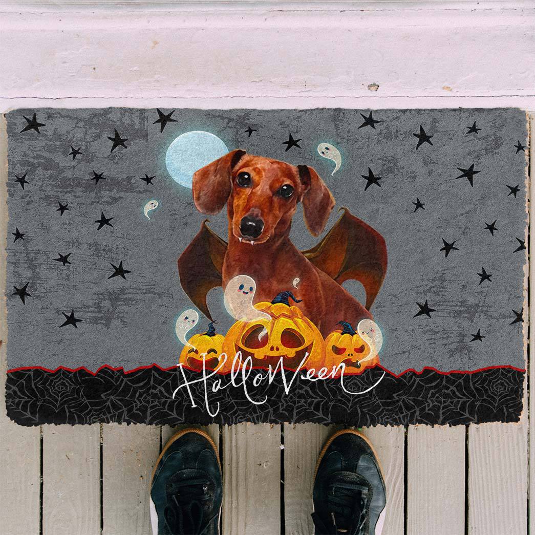Gearhumans 3D Halloween Vampire Dachshund Custom Doormat