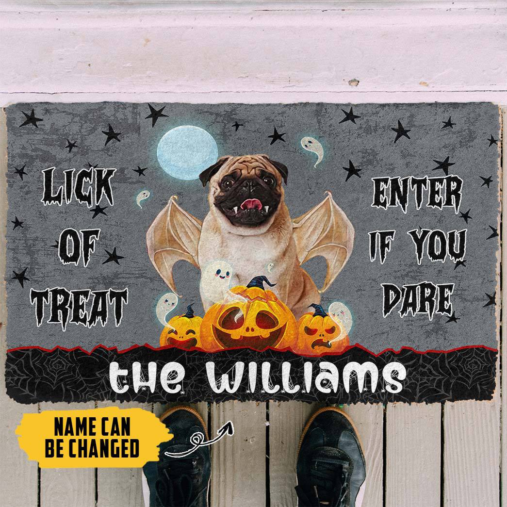 Gearhumans 3D Halloween Vampire Pug Custom Name Doormat