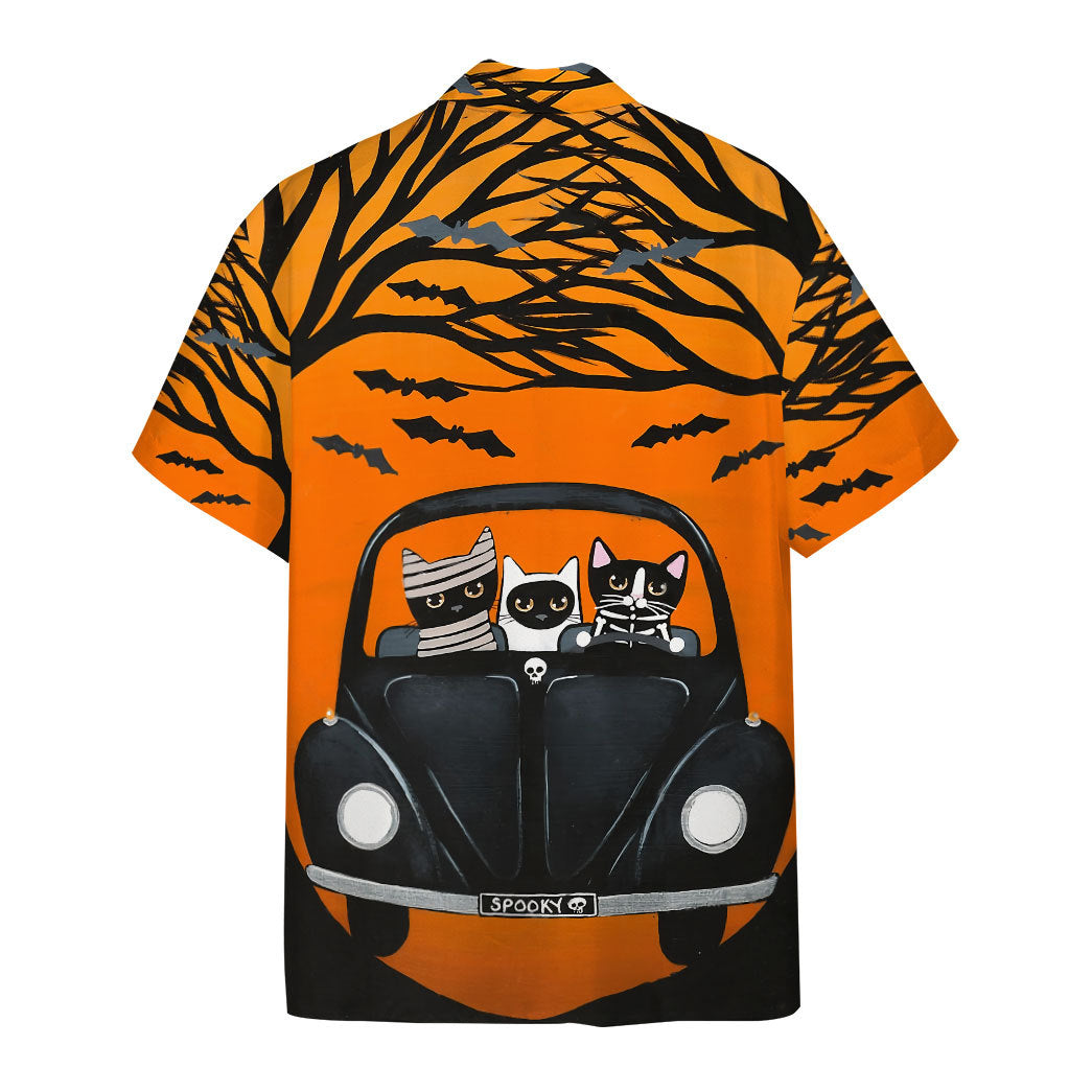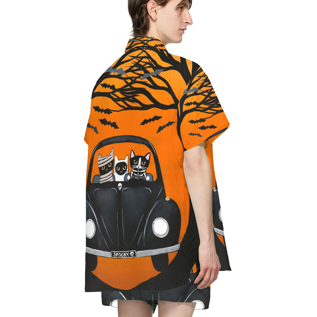 Gearhumans 3D Happy Halloween A Spooky Drive Black Cats Custom Short Sleeves Shirt