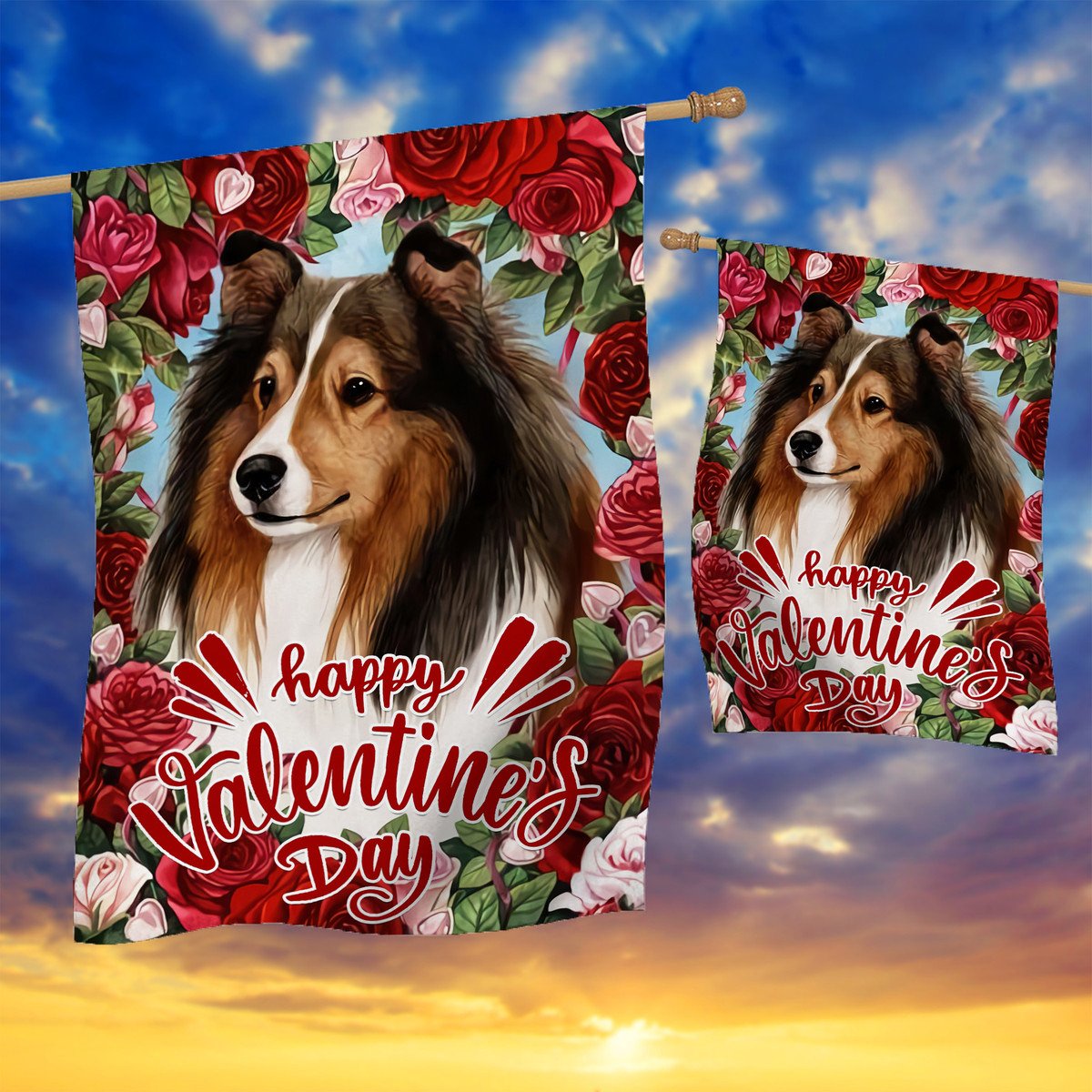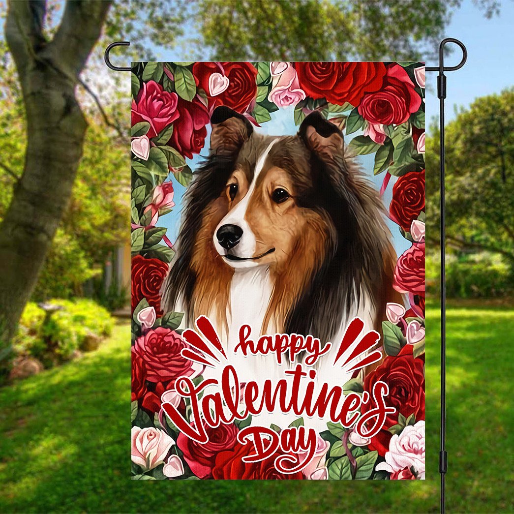 Gearhumans 3D Happy Valentines Day Collie Dog Custom Flag