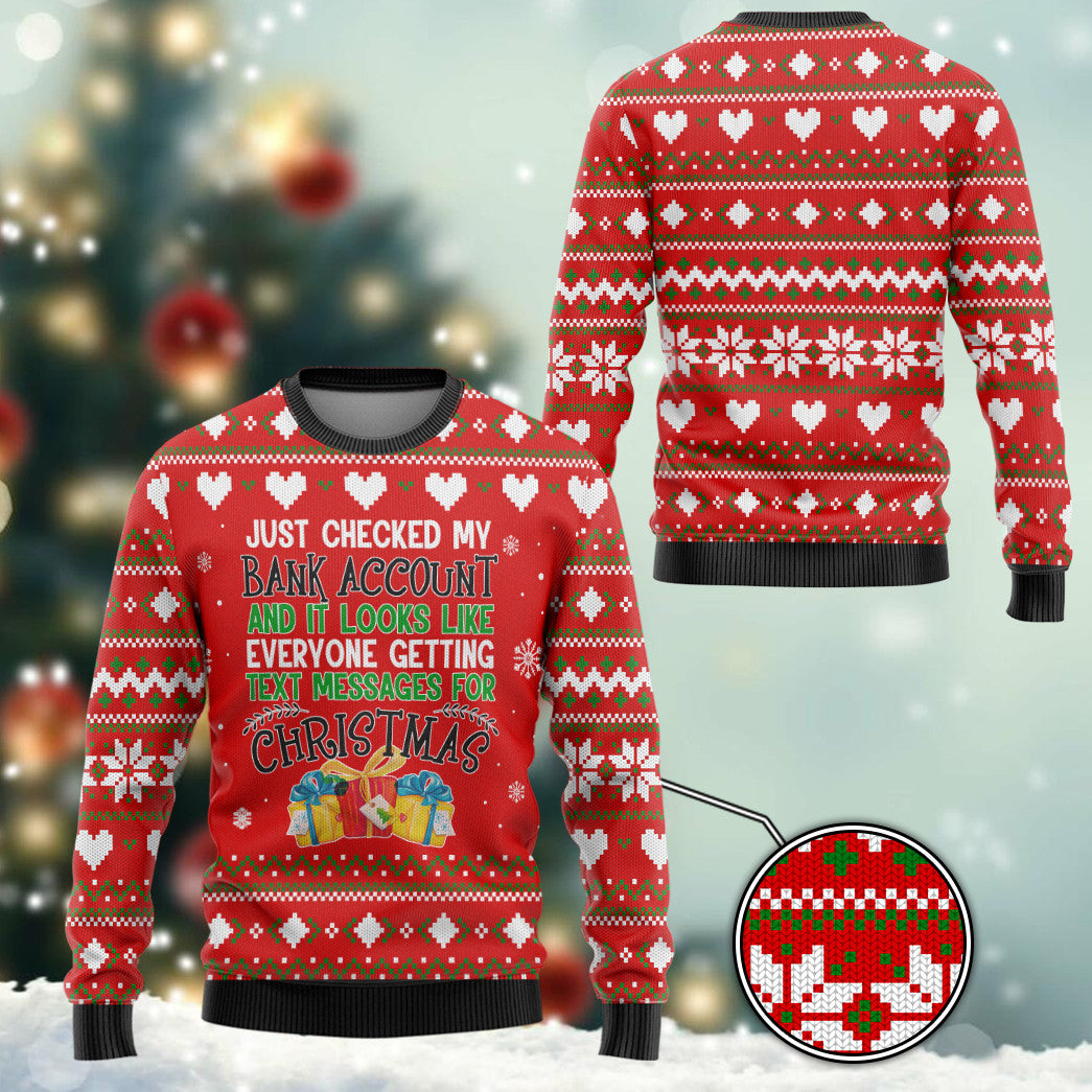 Gearhumans 3D Just Checked My Bank Account Christmas Custom Ugly Long Sleeve