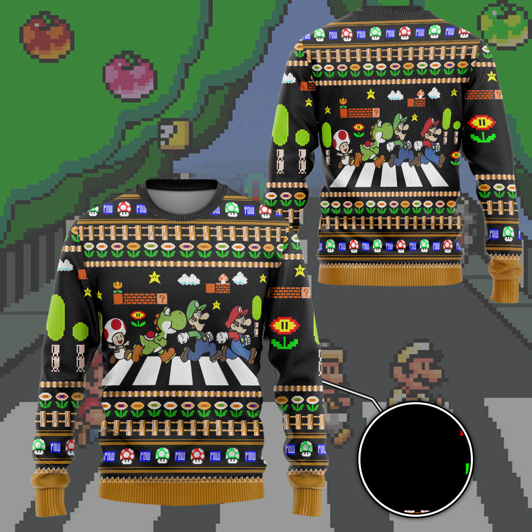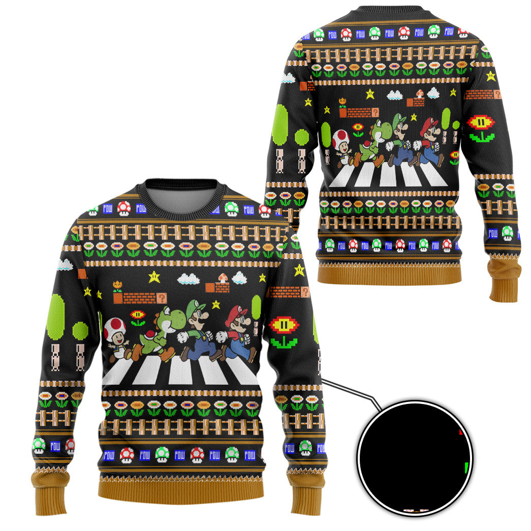 Gearhumans 3D Mario Abbey Road Custom Ugly Christmas Long sleeve
