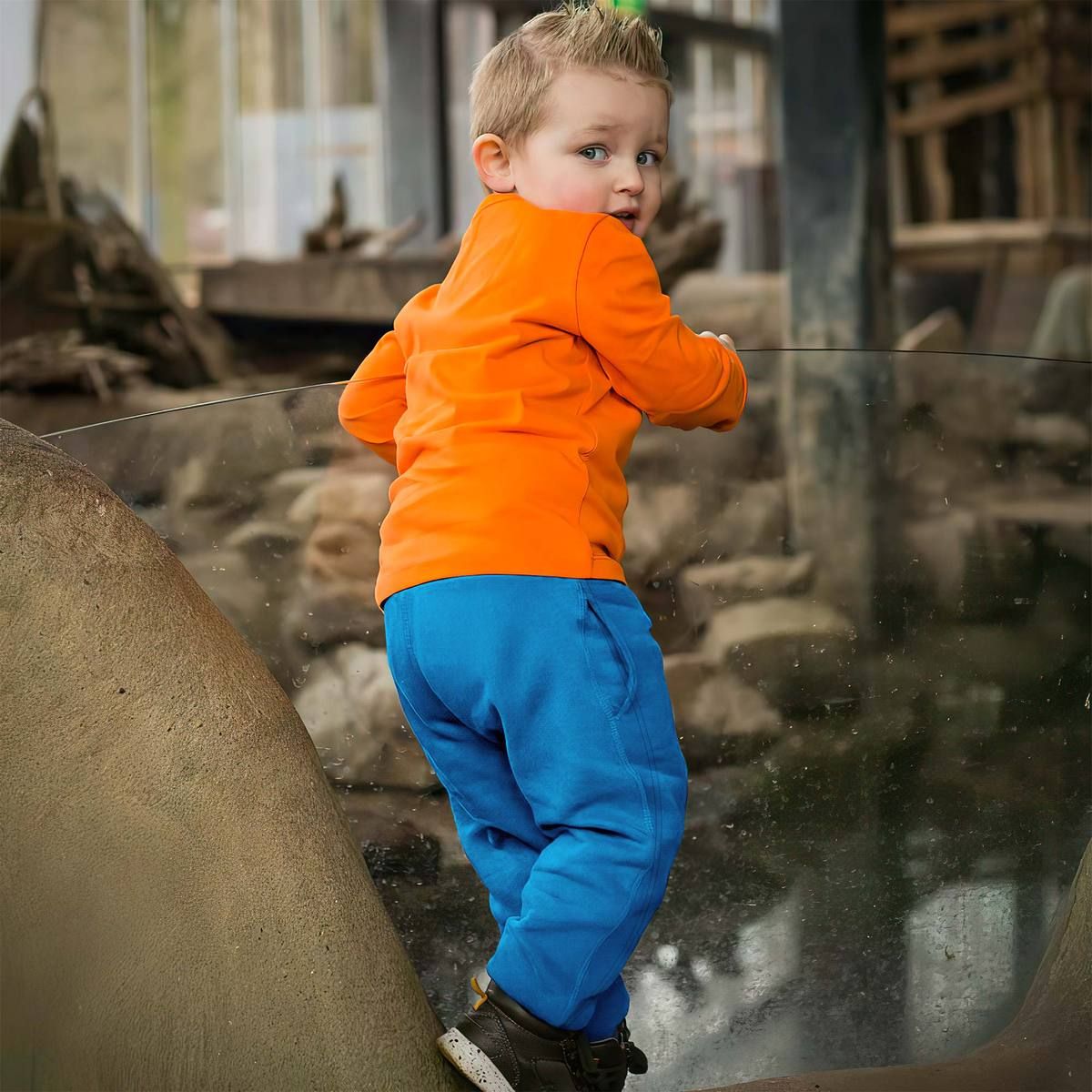 - Children’s classic casual trousers, with elastic waistbands to close the waist and the styles of the feet to close. Fabric: Scuba(95% polyester and 5% )
