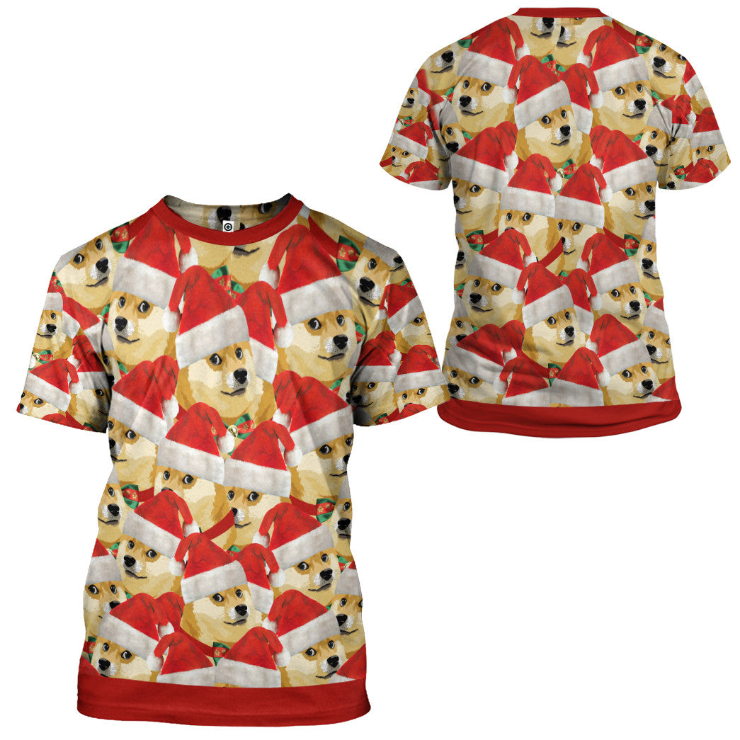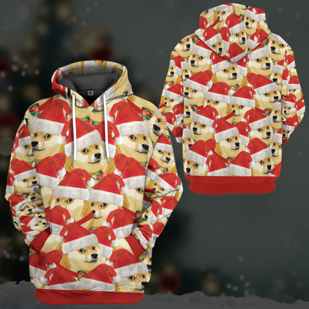 Gearhumans 3D Merry Christmas With Doge Custom Hoodie Tshirt Apparel