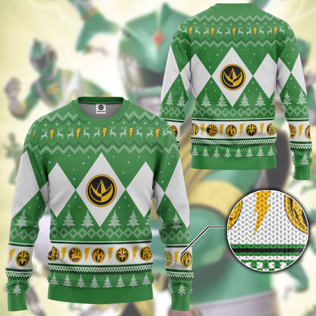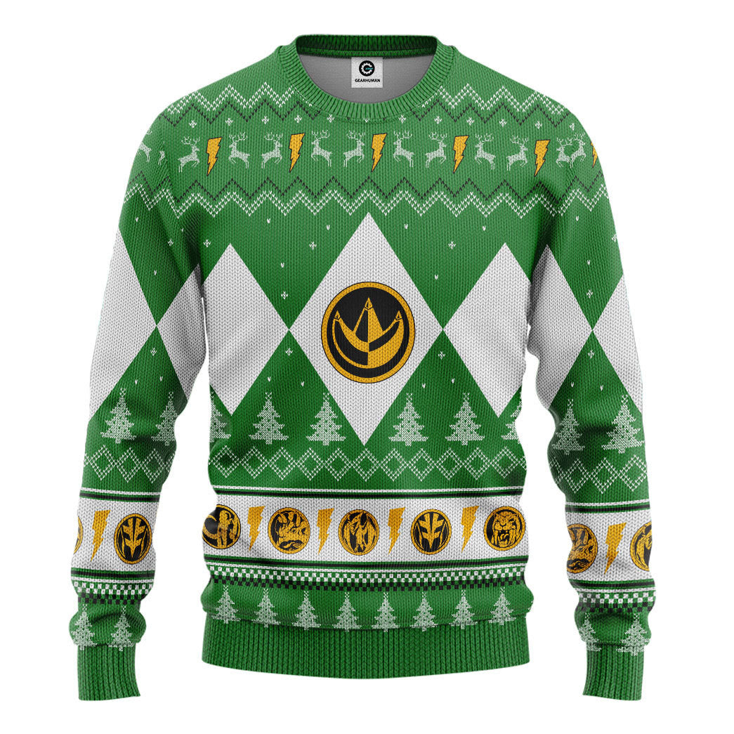 Gearhumans 3D Mighty Morphin Green Ranger Christmas Custom Ugly Long sleeve