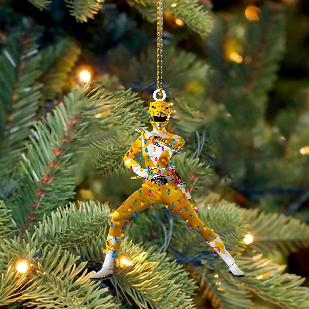 Gearhumans 3D Mighty Morphin Yellow Power Ranger Christmas Custom Ornament