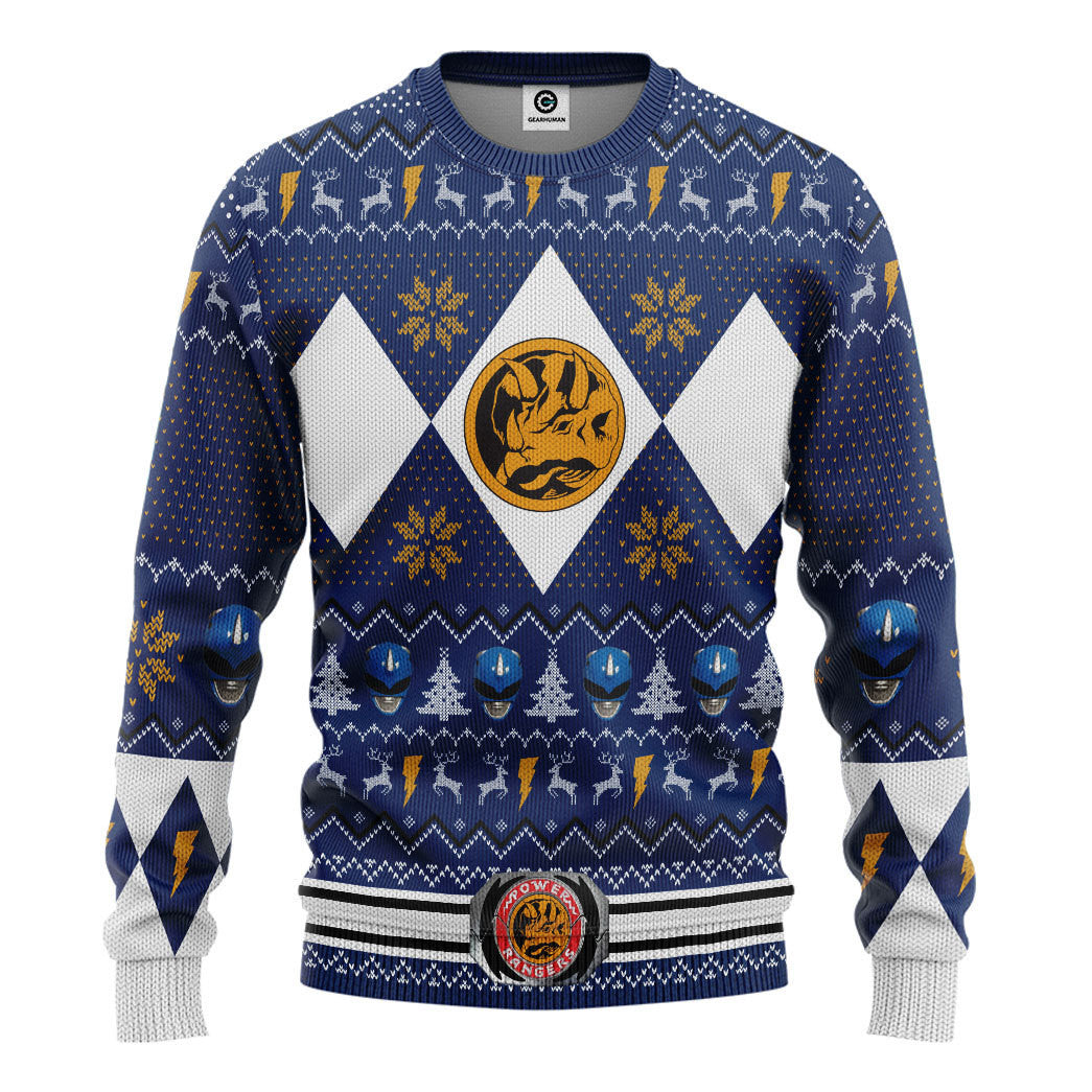 Gearhumans 3D MMPR Blue Ranger Christmas Custom Ugly Long sleeve