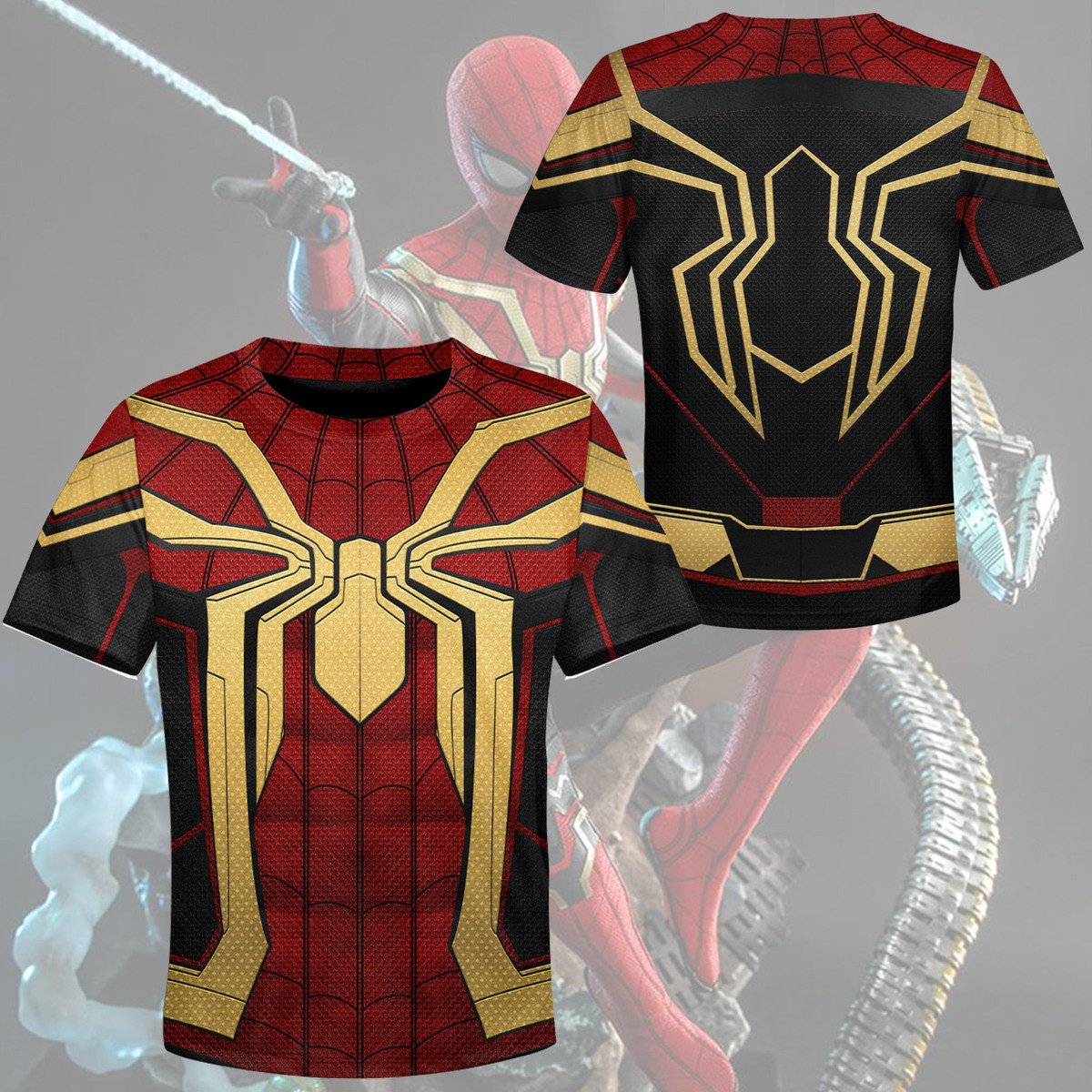Gearhumans 3D Mrvl Spider Superhero Red And Golden Suit Custom Kid Tshirt Hoodie Apparel
