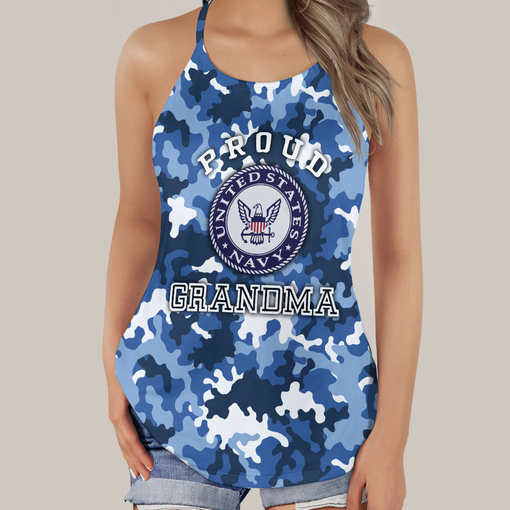 Gearhumans 3D Navy Military Proud Grandma Custom Cross Tank Top